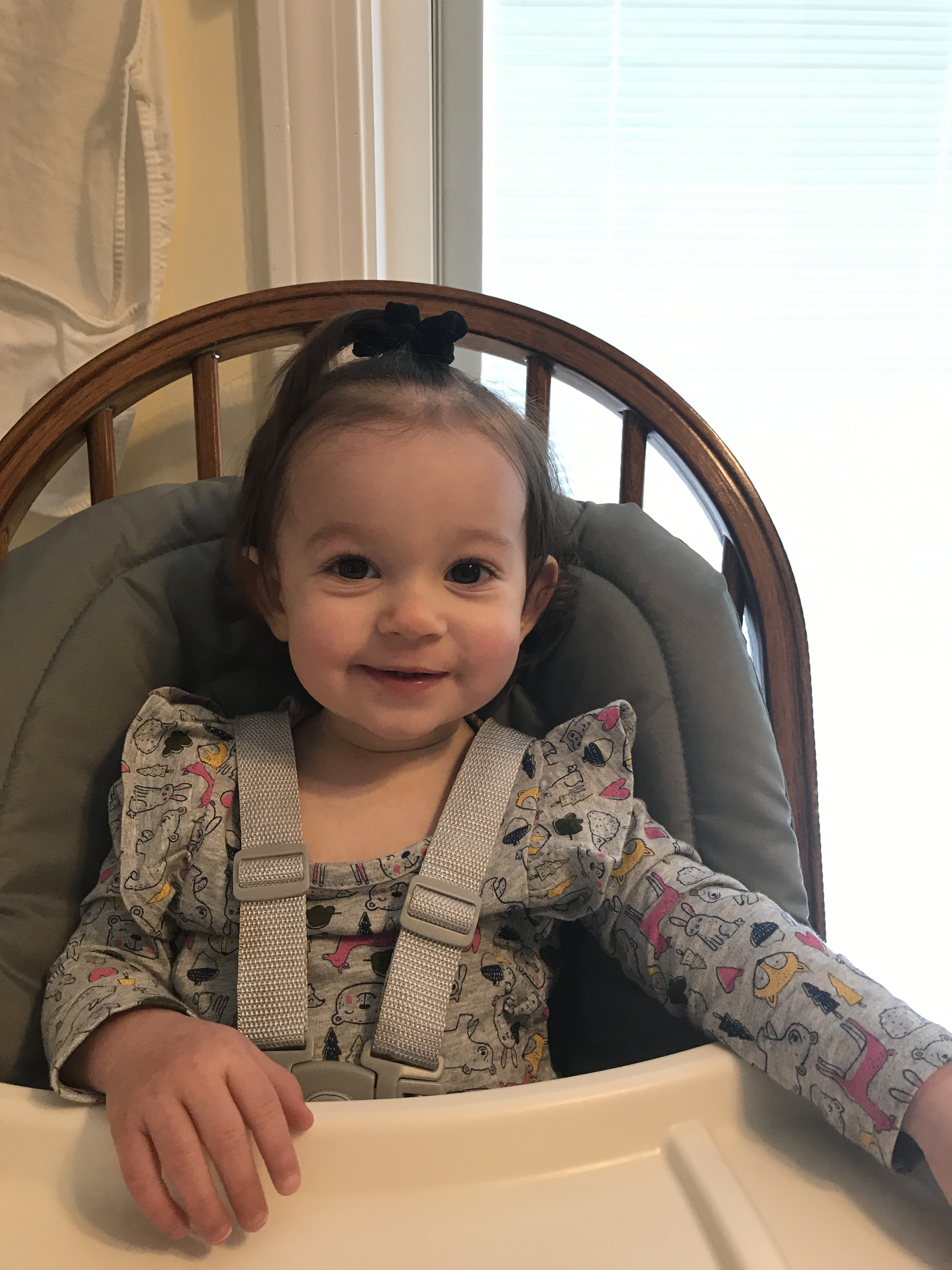 Charcoal drawing of a smiling toddler girl with hair in a ponytail.