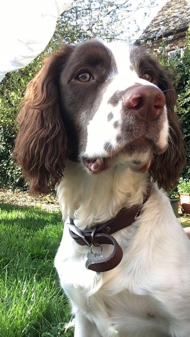 Colored pencil drawing of a Springer Spaniel wearing a collar.