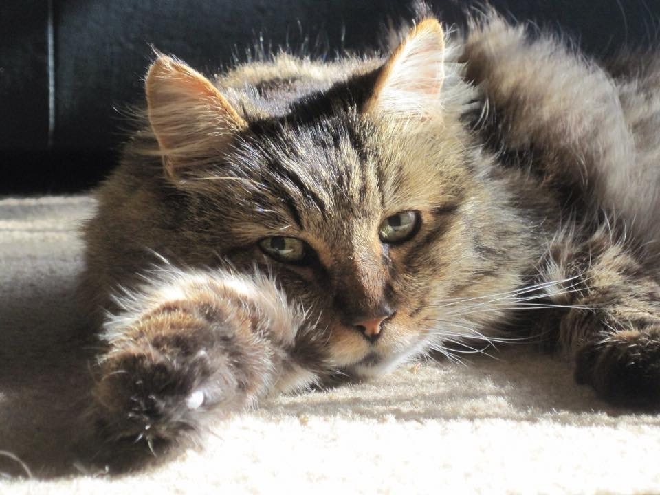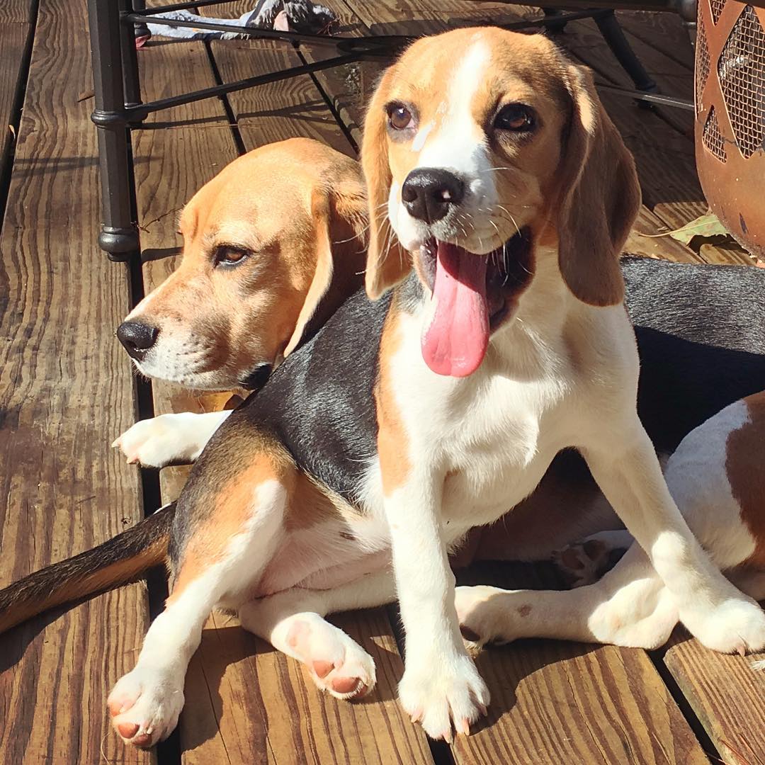 Brown dog wearing red collar sitting on cactus patterned blanket