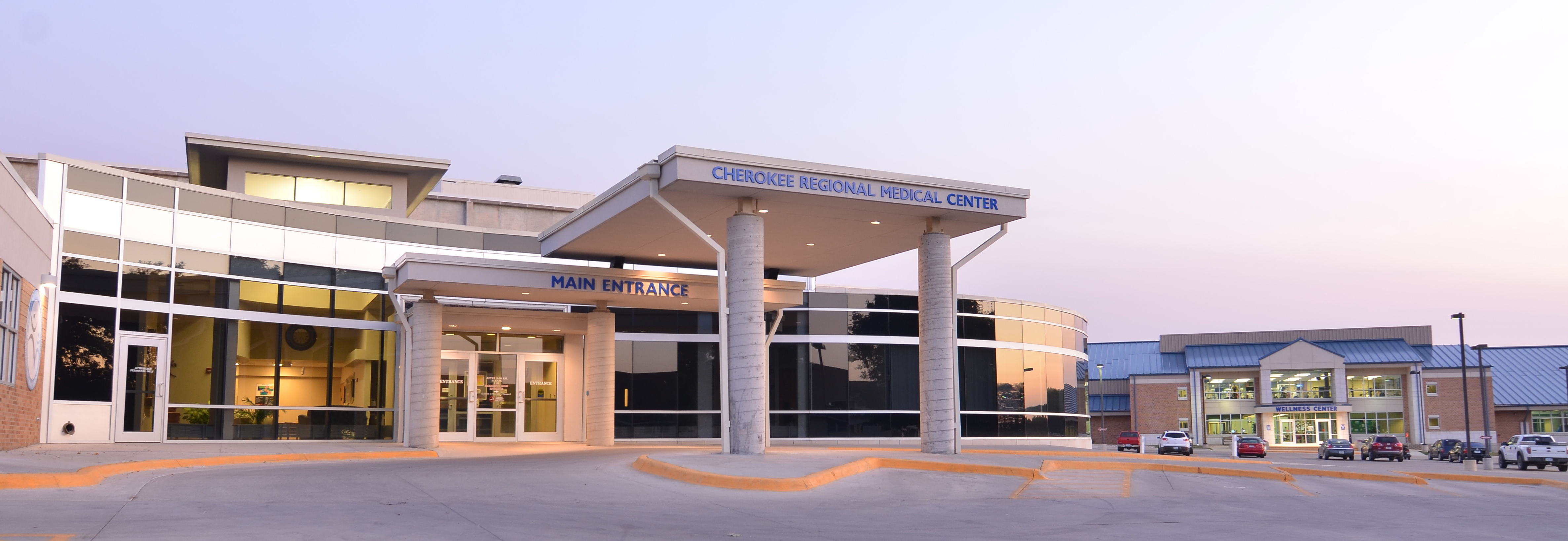 Watercolor painting of Cherokee Regional Medical Center main entrance.