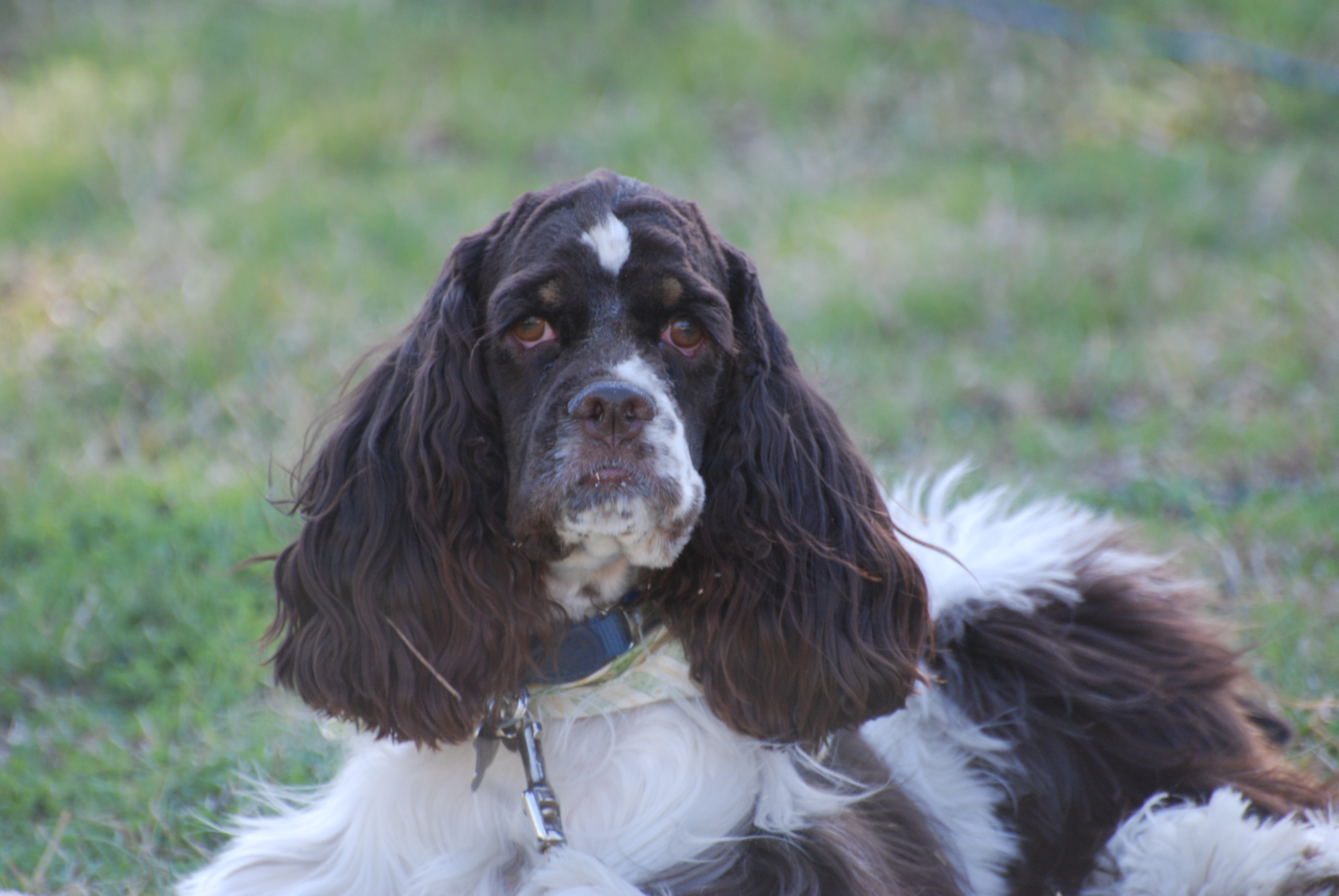 Painting of Bentley, a black and white Springer Spaniel, in loving memory.