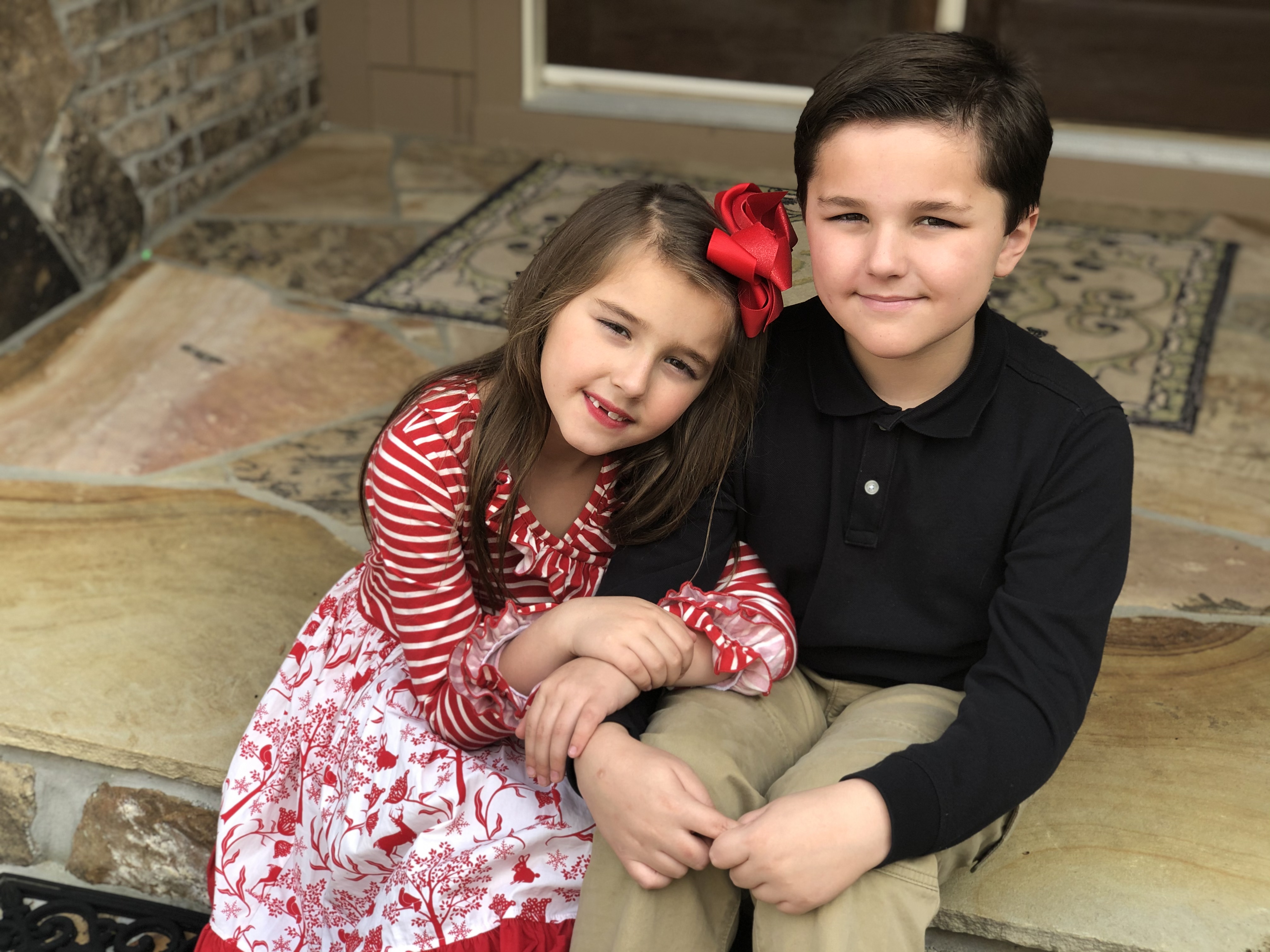 Painted portrait of a girl and boy siblings.