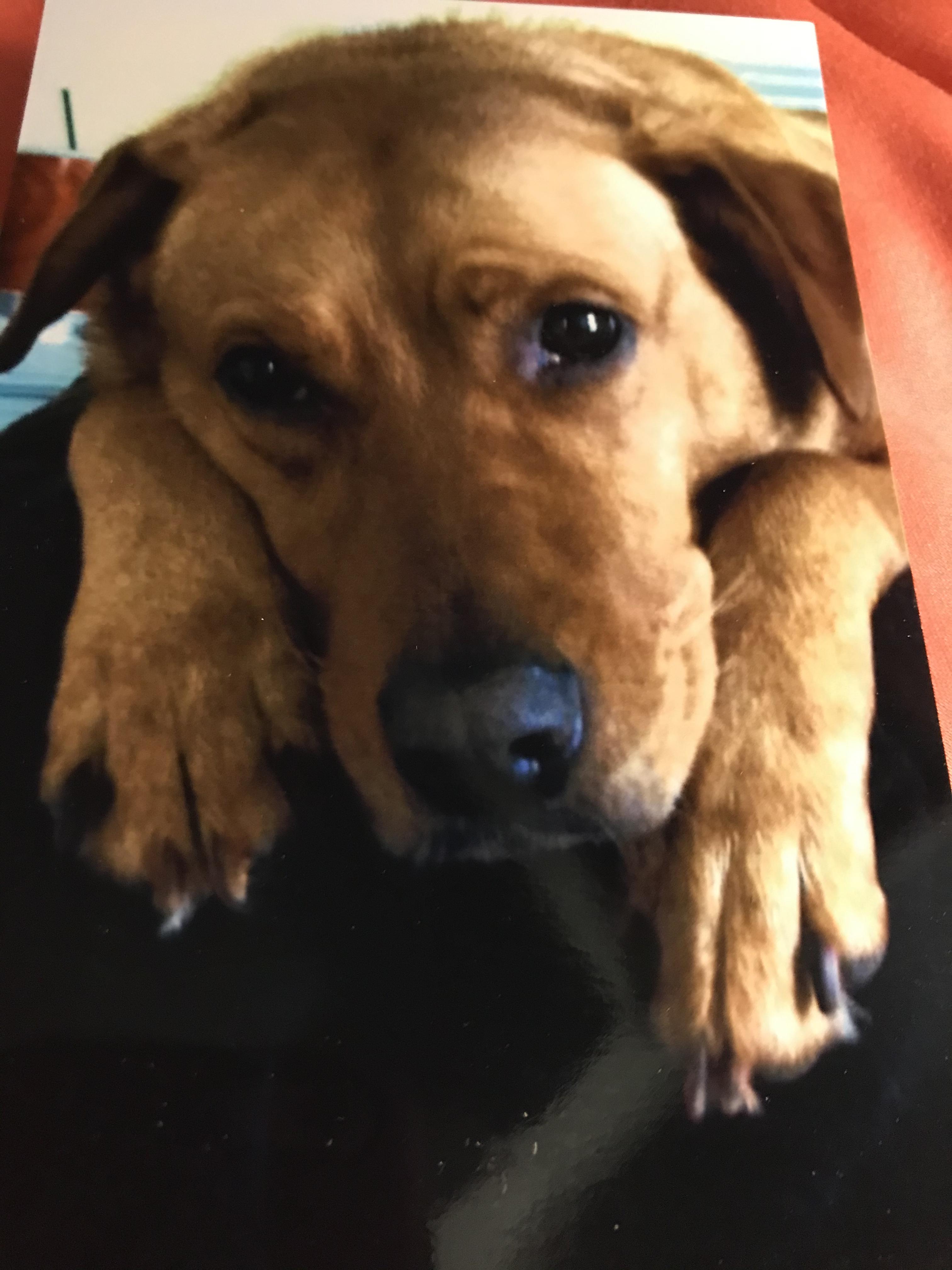 Black and white charcoal drawing of a dog`s head.