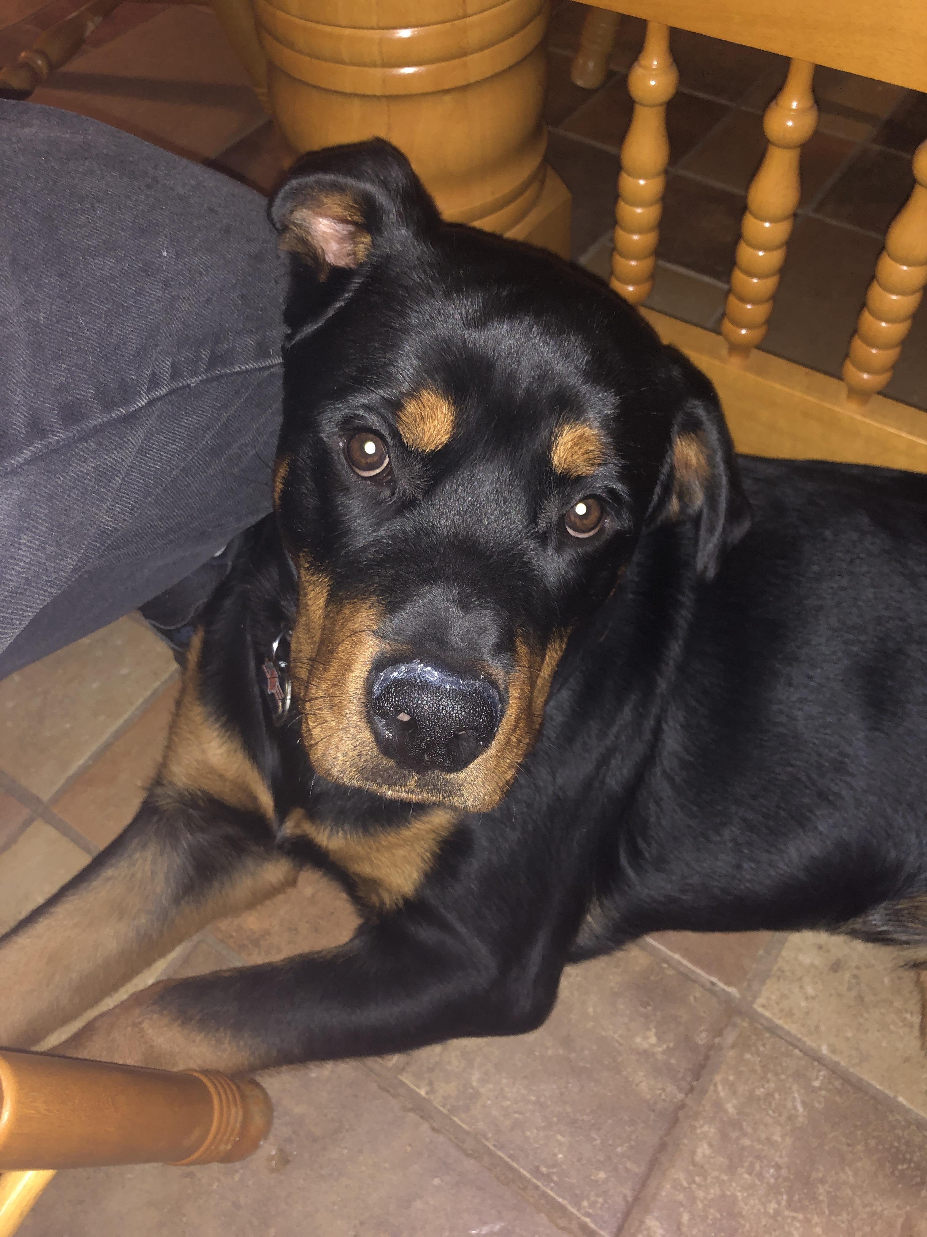 Painting of a Rottweiler puppy.