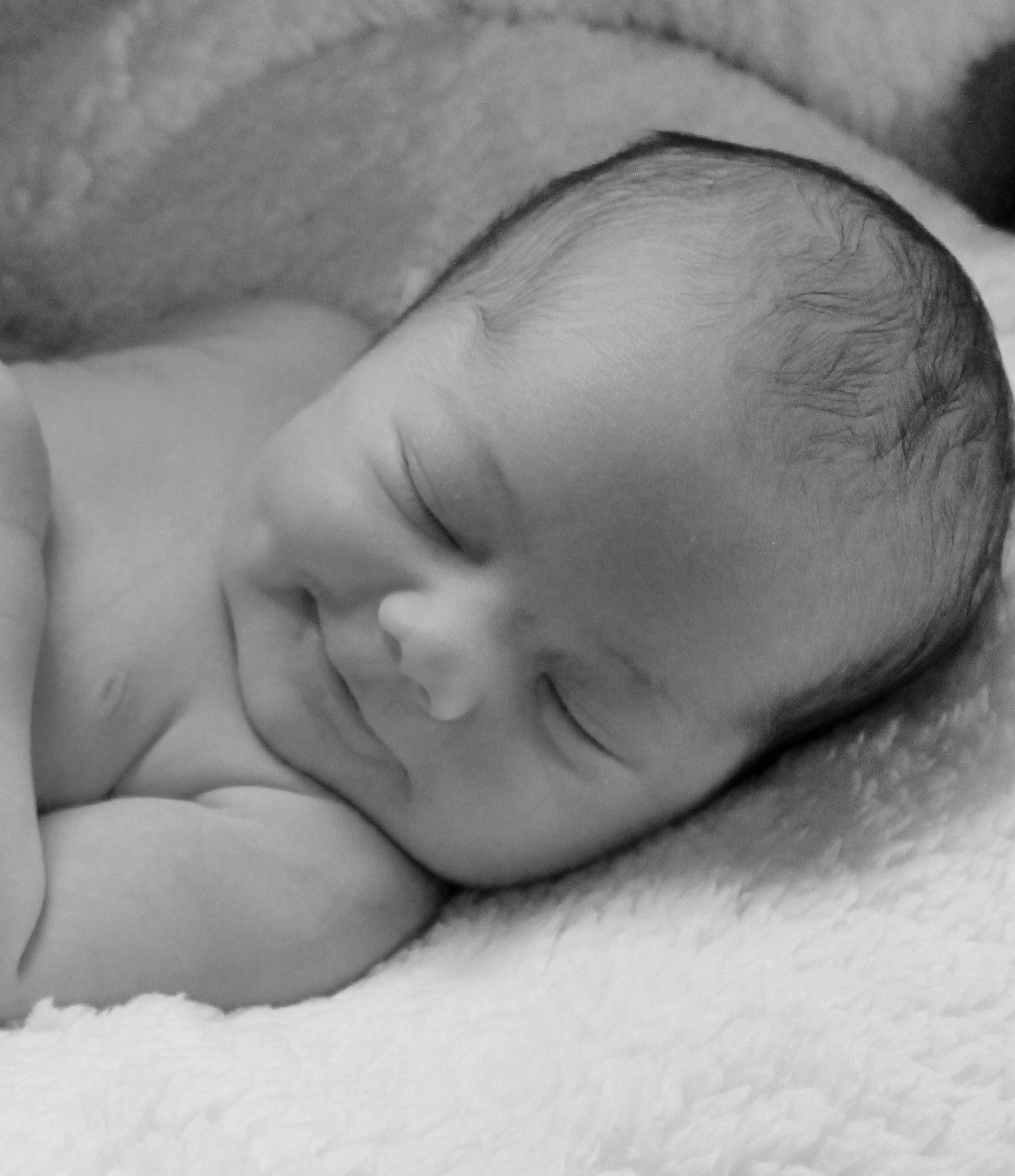 Black and white painting of a sleeping baby.