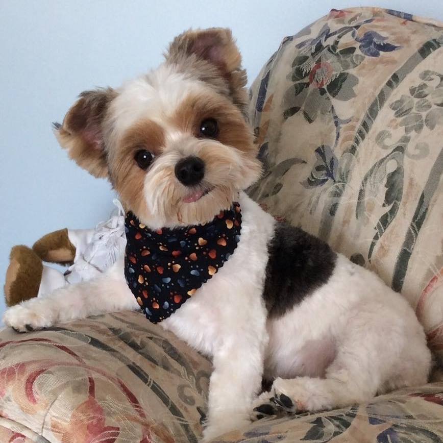 Painting of a Yorkshire Terrier wearing a bandana.