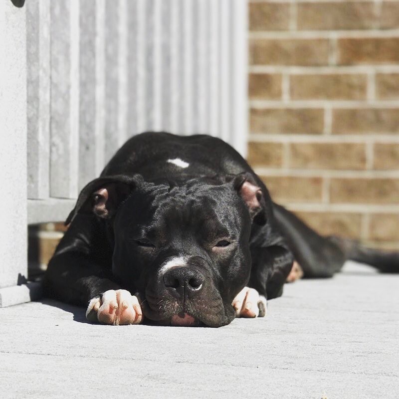 Painting of a black dog resting its head on a surface near a brick wall and radiator.