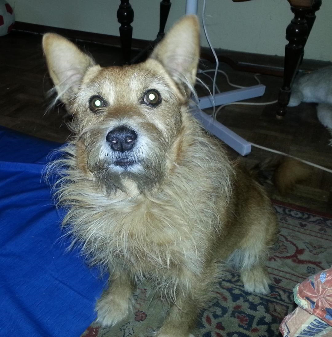 Painting of a fluffy, light brown dog looking directly at the viewer.
