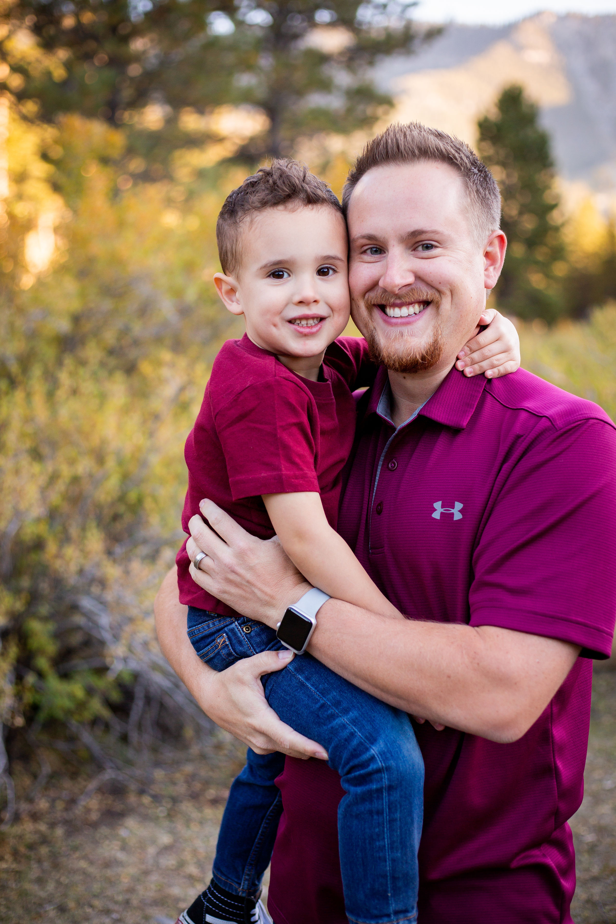 Painted portrait of a family: father, mother, and young son.