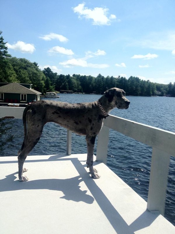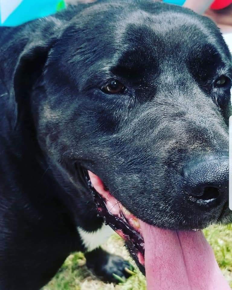 Painting of a black dog with its tongue out