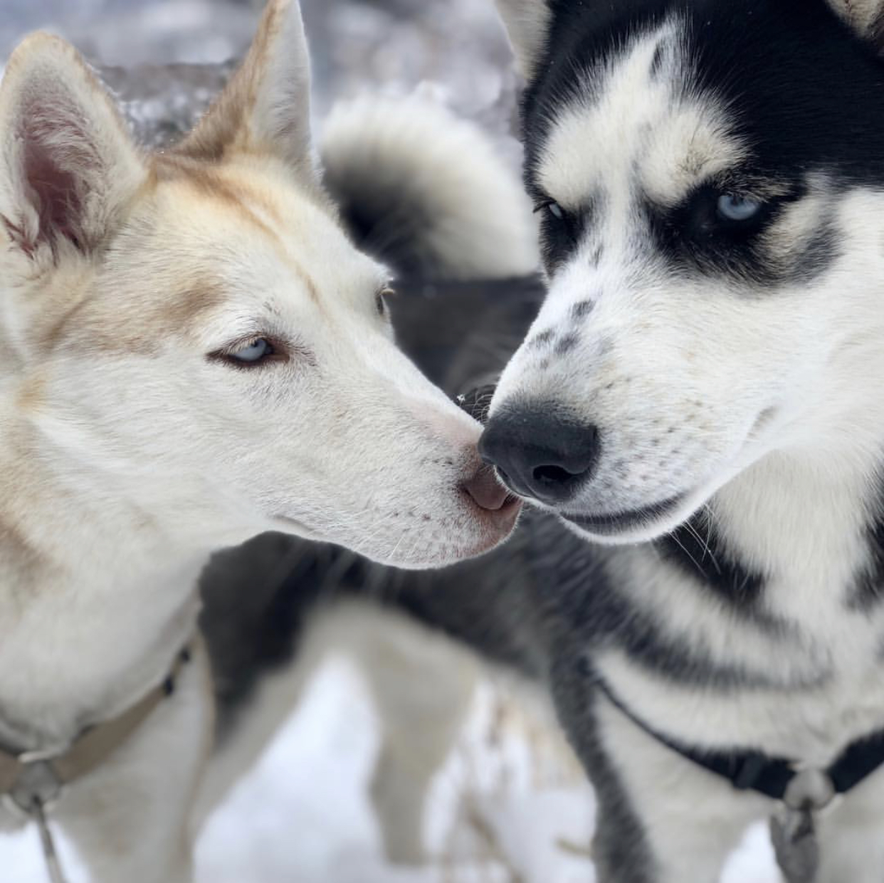 Painting of two huskies nuzzling.