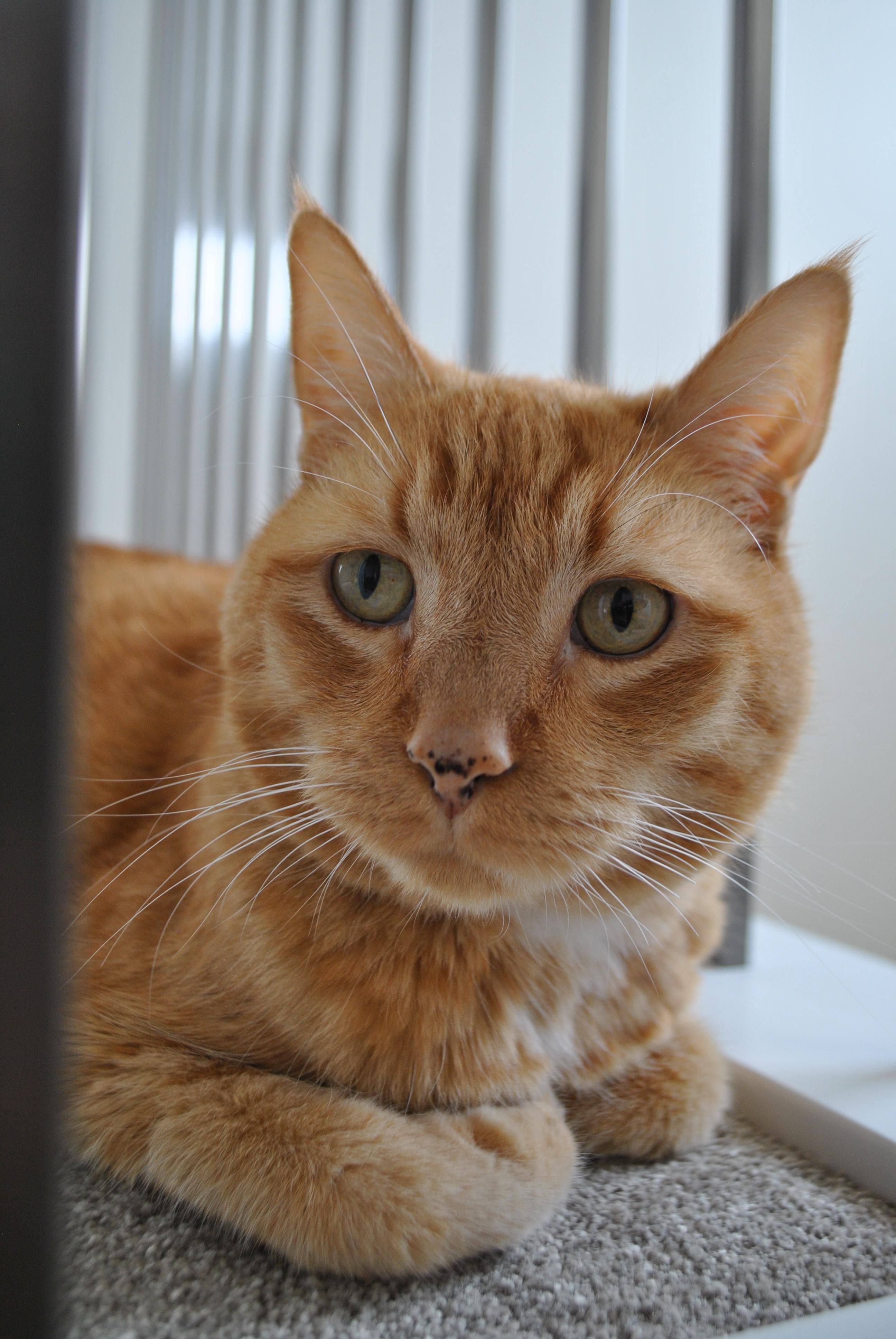 Painting of an orange tabby cat lying down