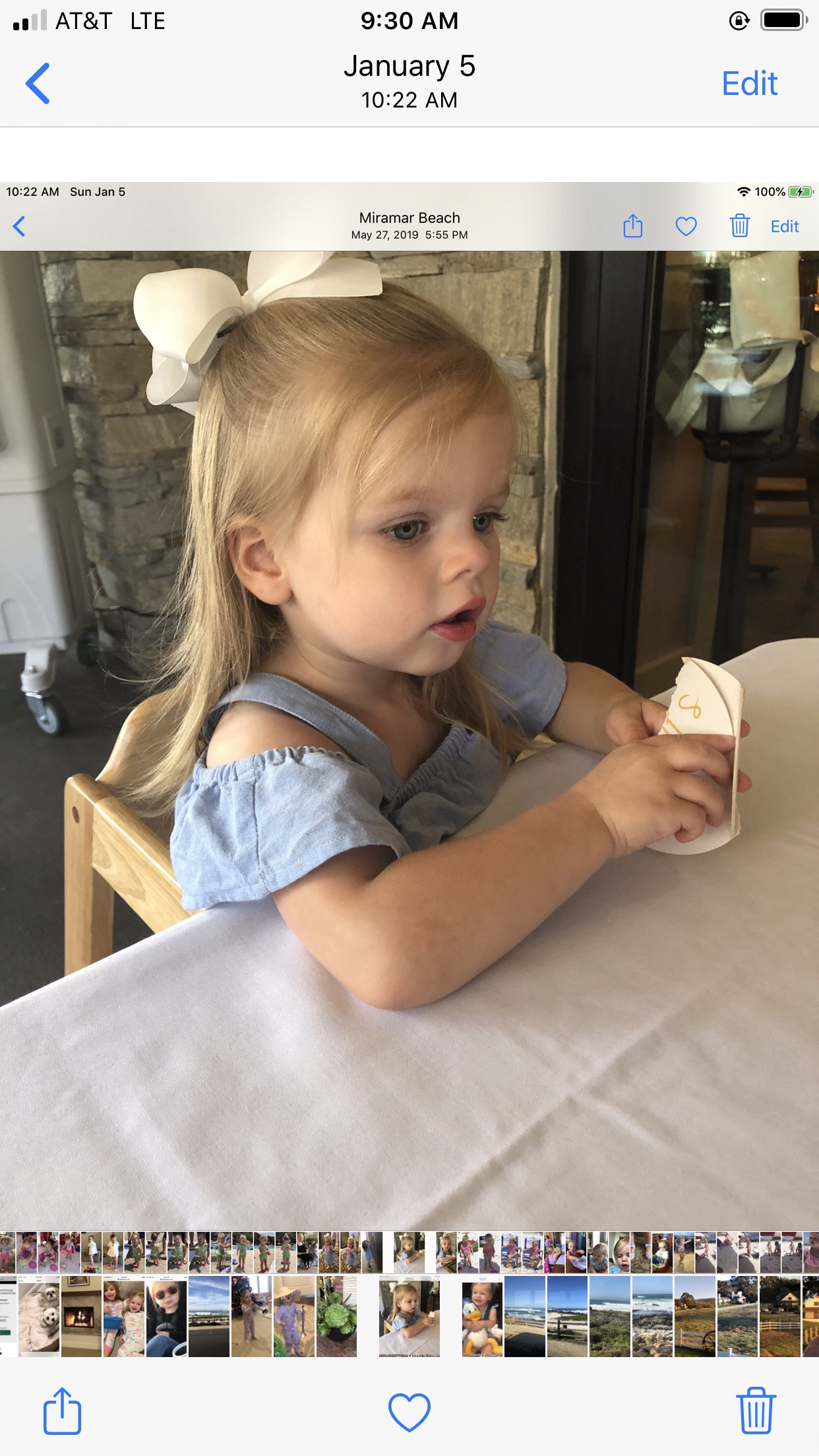 Portrait of a toddler girl with blonde hair and a large white bow.