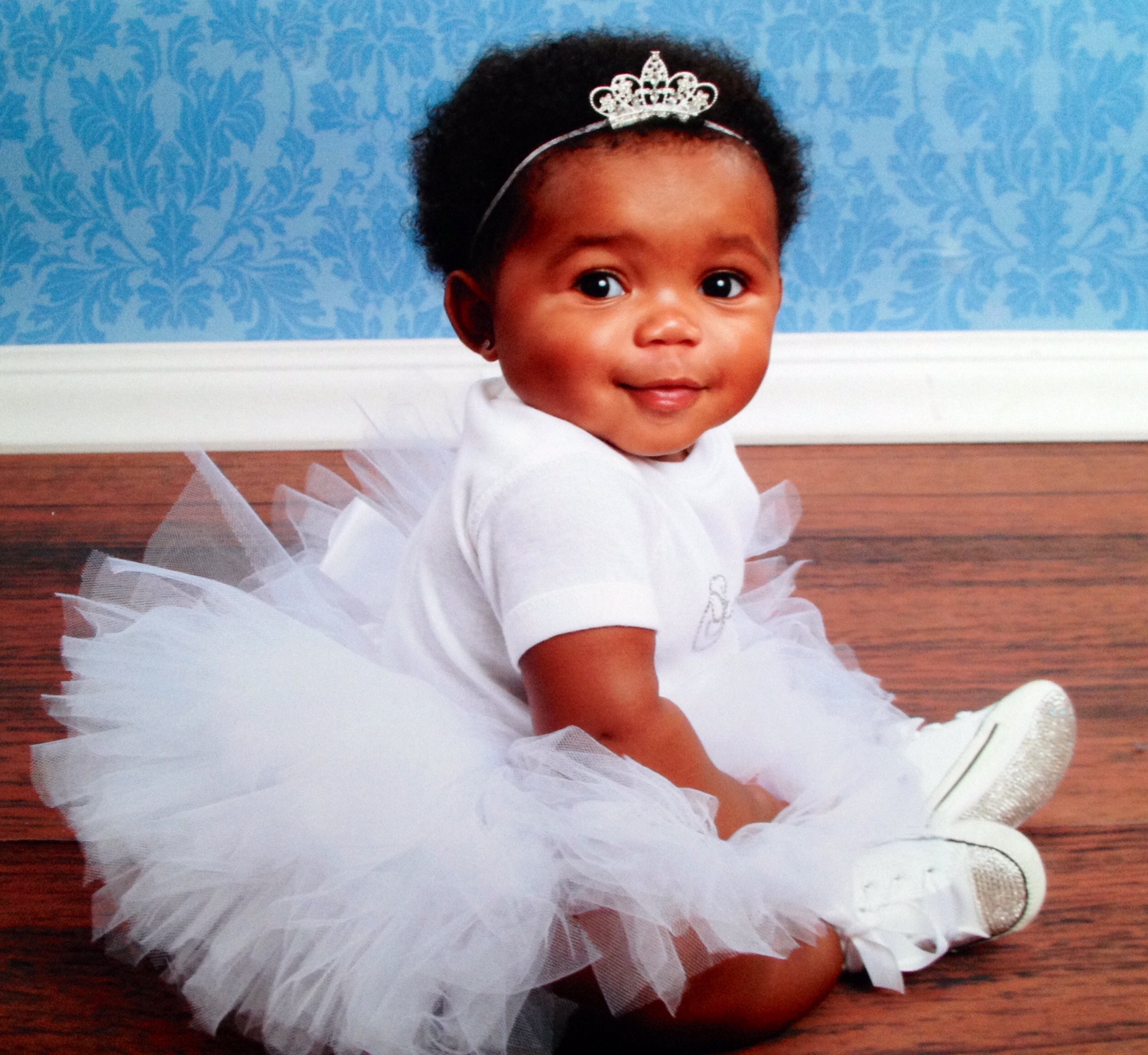 Painting of a baby girl wearing a white tutu and tiara