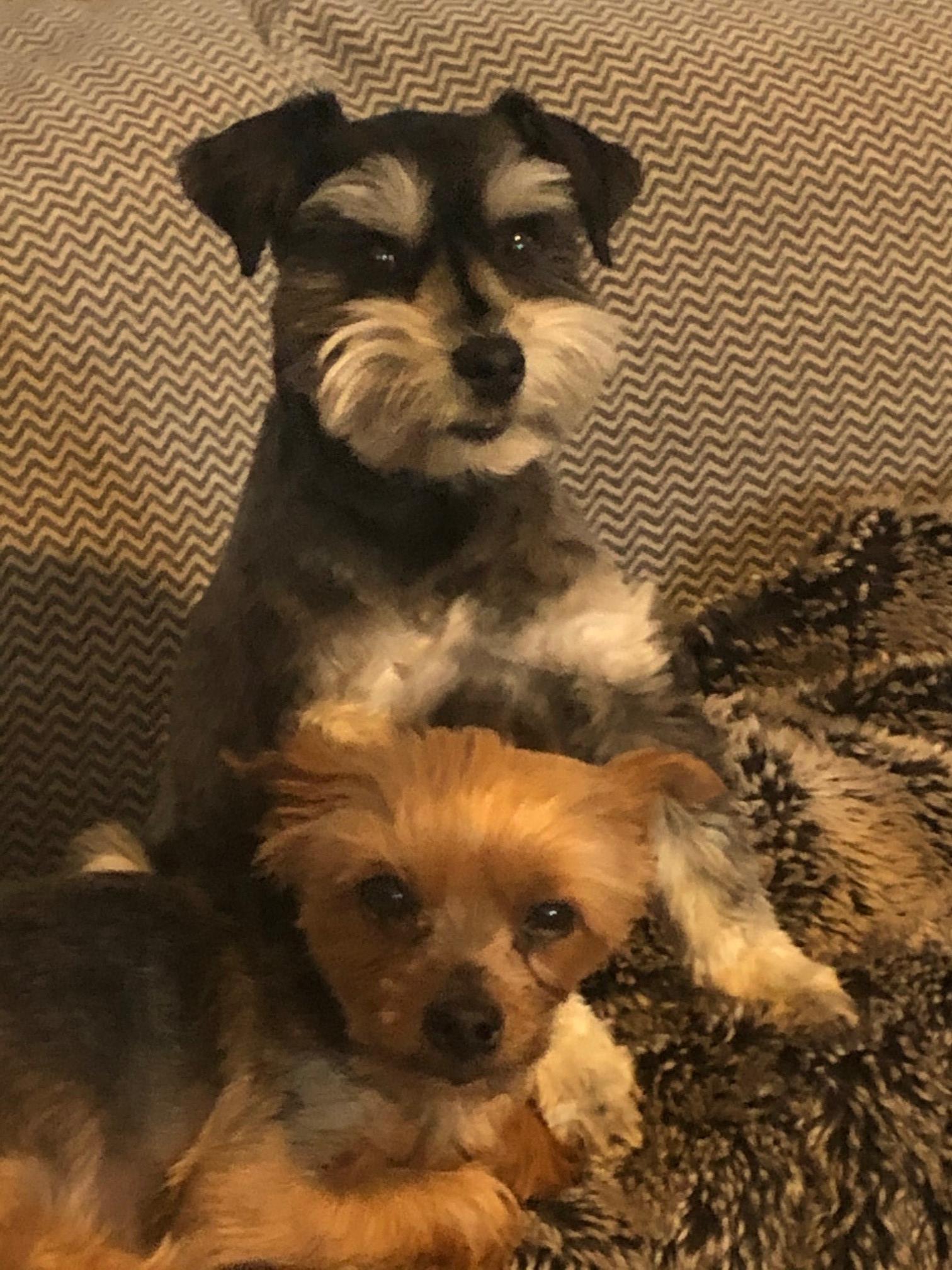 Painting of a Yorkshire Terrier and a Miniature Schnauzer.