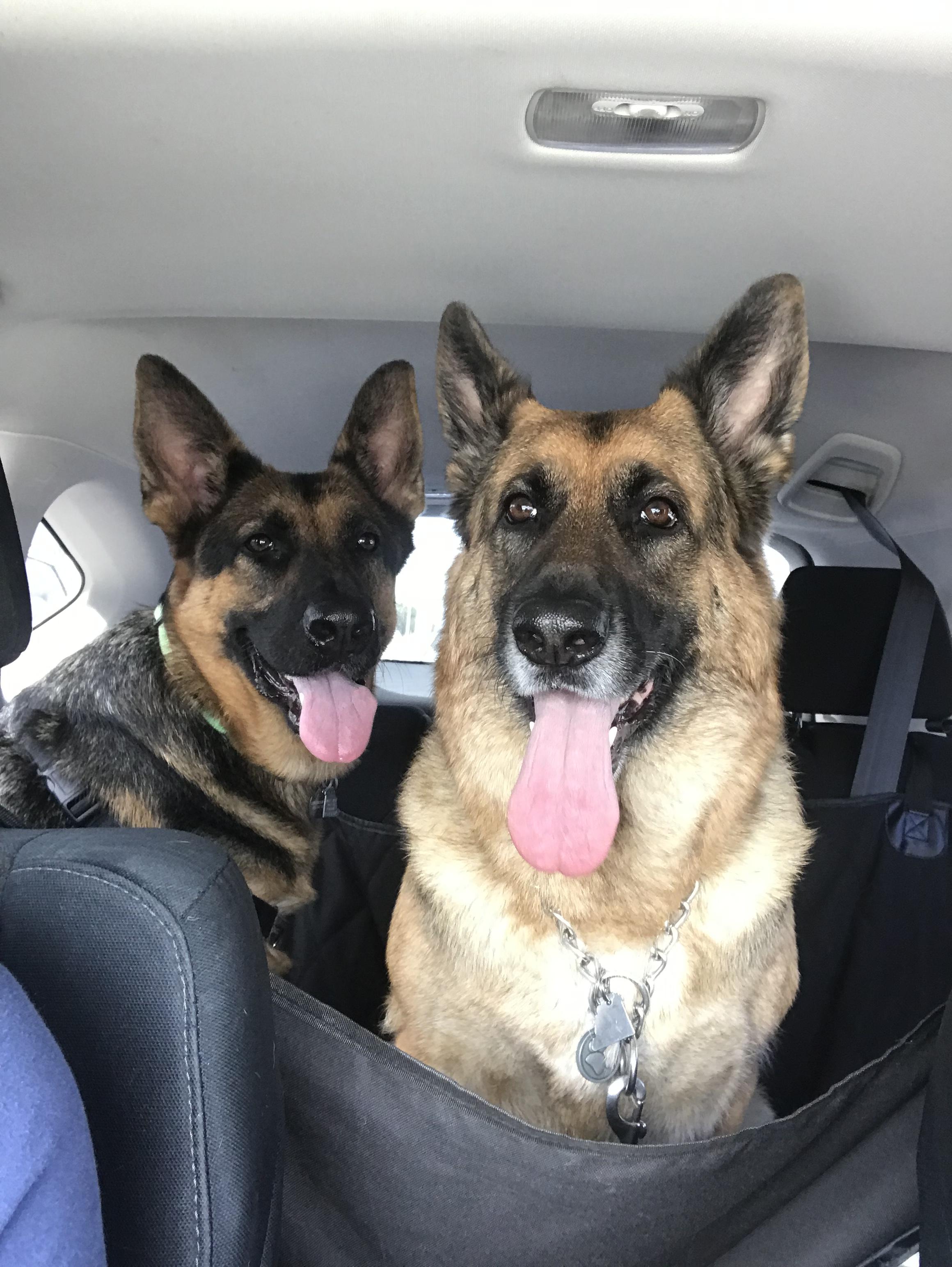 Painting of two German Shepherd dogs.