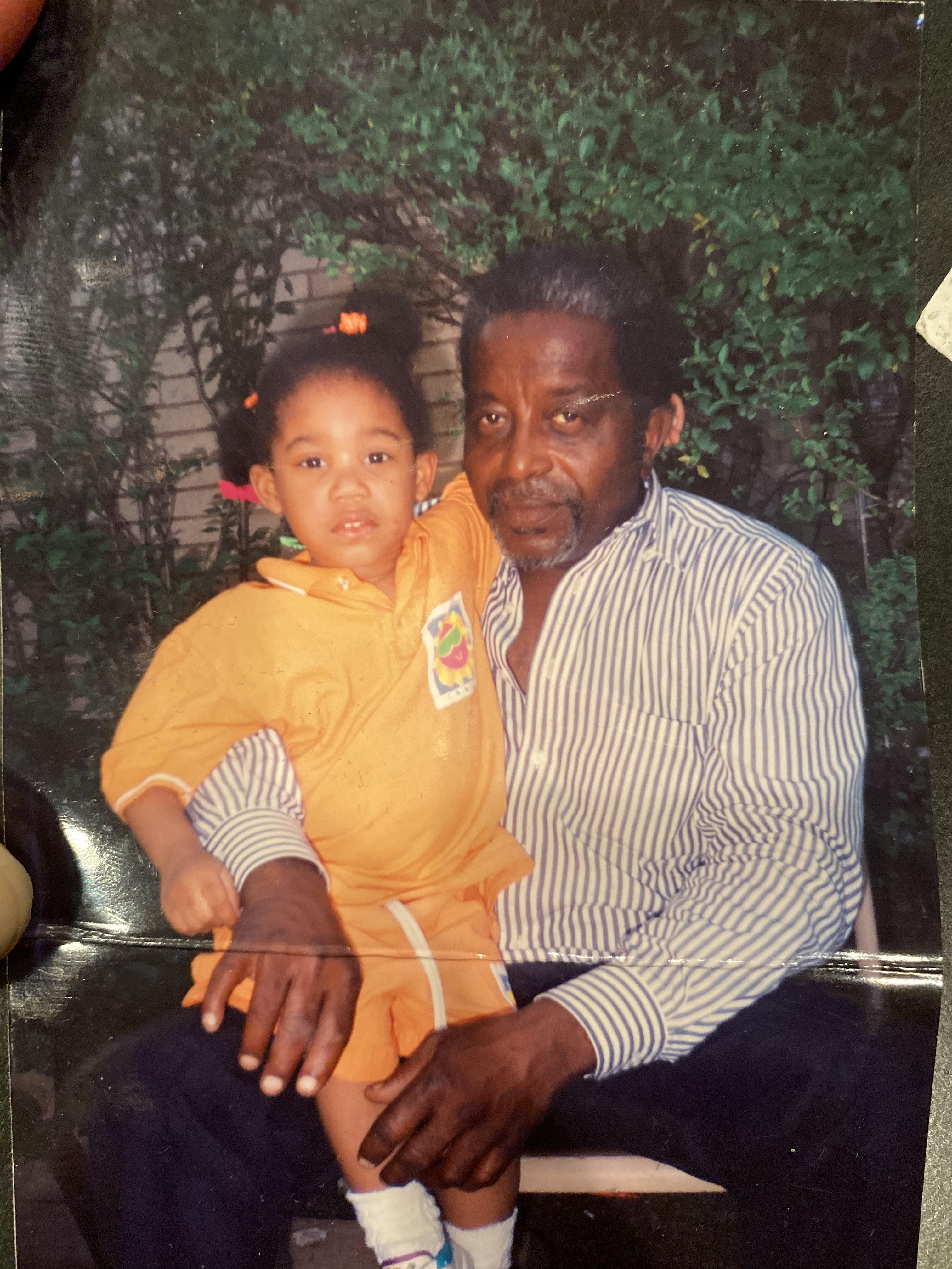 Painting of an older Black man and a young Black child.