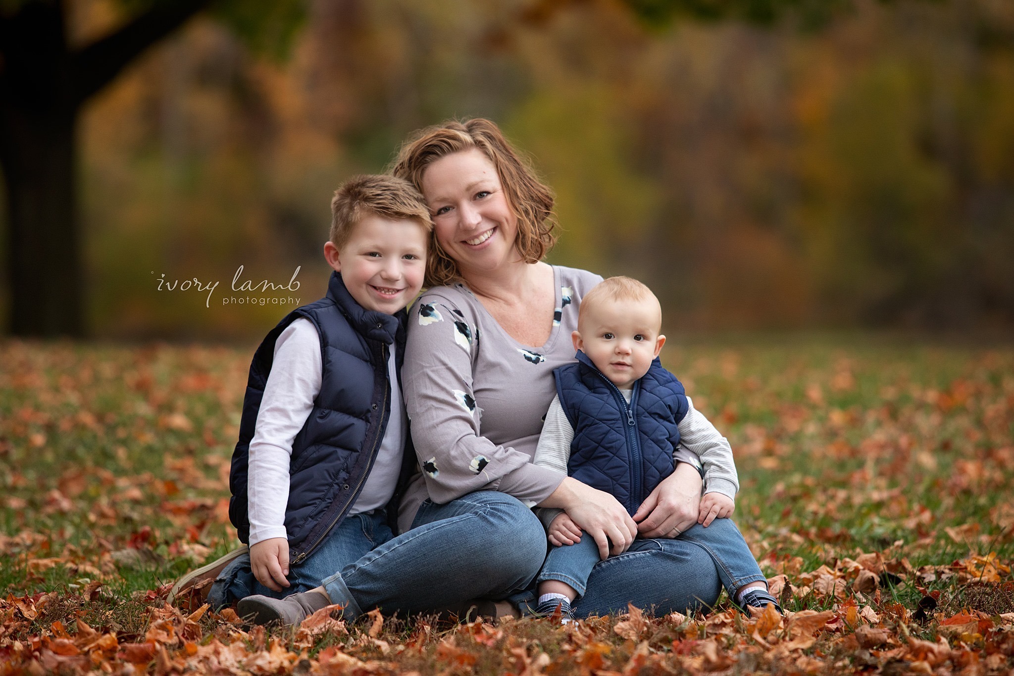 Portrait painting of a father with his two young sons.