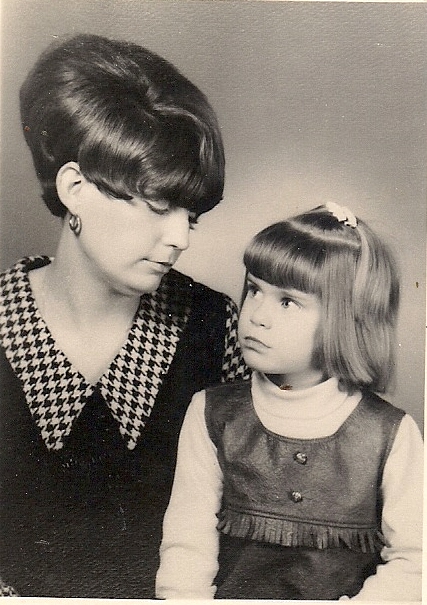 Black and white painting of a woman and a young girl.
