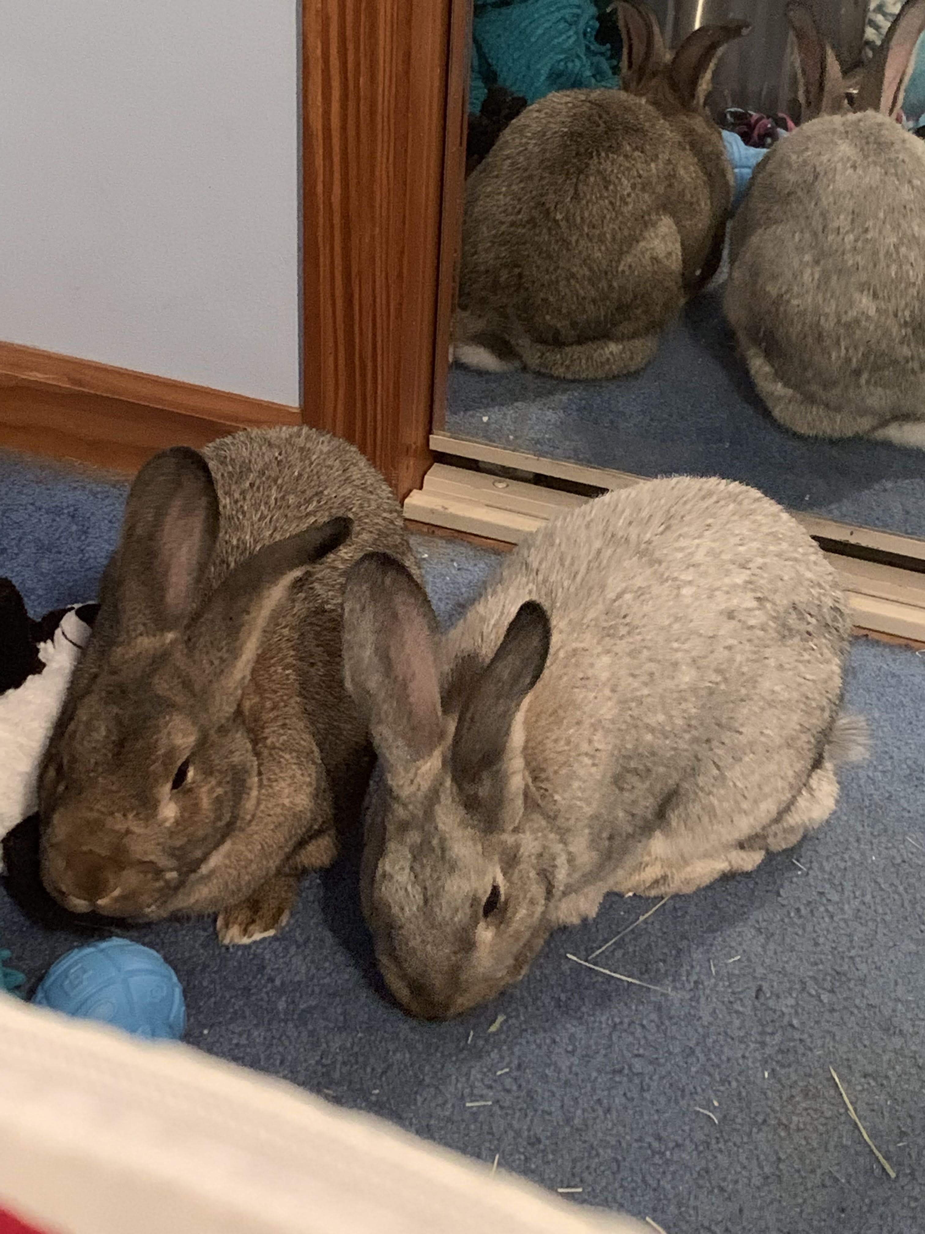 Painting of a dog, two cats, and two rabbits.