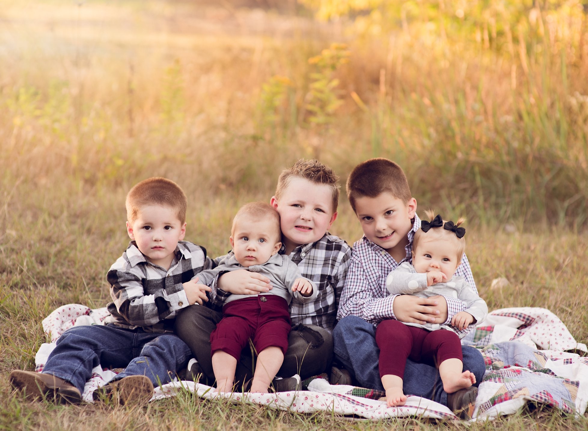 Painting of a grandfather with four grandchildren.