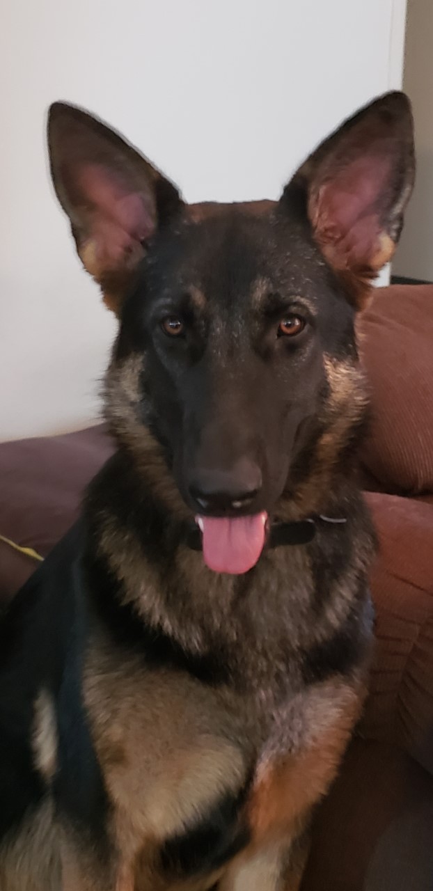 Painting of two German Shepherd dogs.