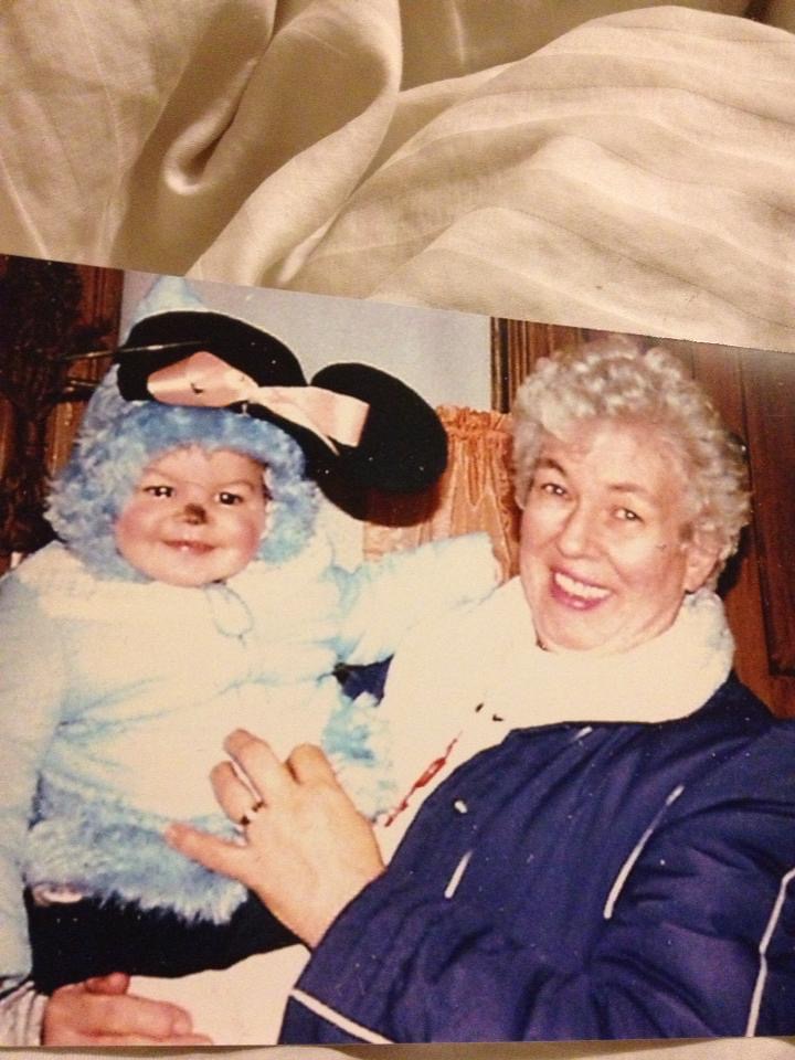 "My best friend lost her Memere before her daughter Eden, my Goddaughter was born. Alysha was so very close to her Memere, sharing their faith along with so many other things, she was heartbroken to lose her before she could meet Eden and love her the same way she had always loved Alysha. I used a picture of Memere and Alysha from her very first Halloween and added my absolute favorite picture of my goddaughter, Eden. "
