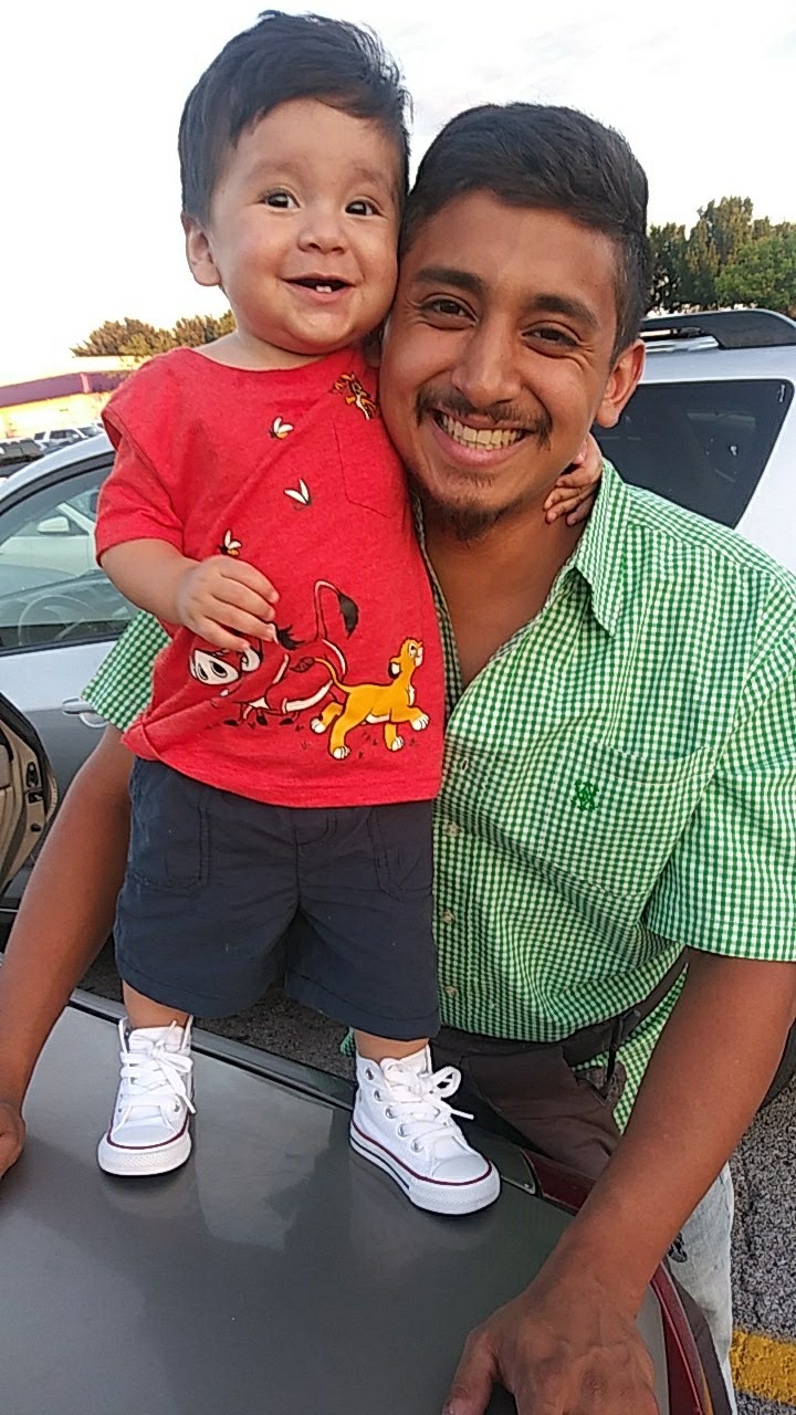 Painted portrait of three generations of a family: an older man, a younger man, and a toddler.