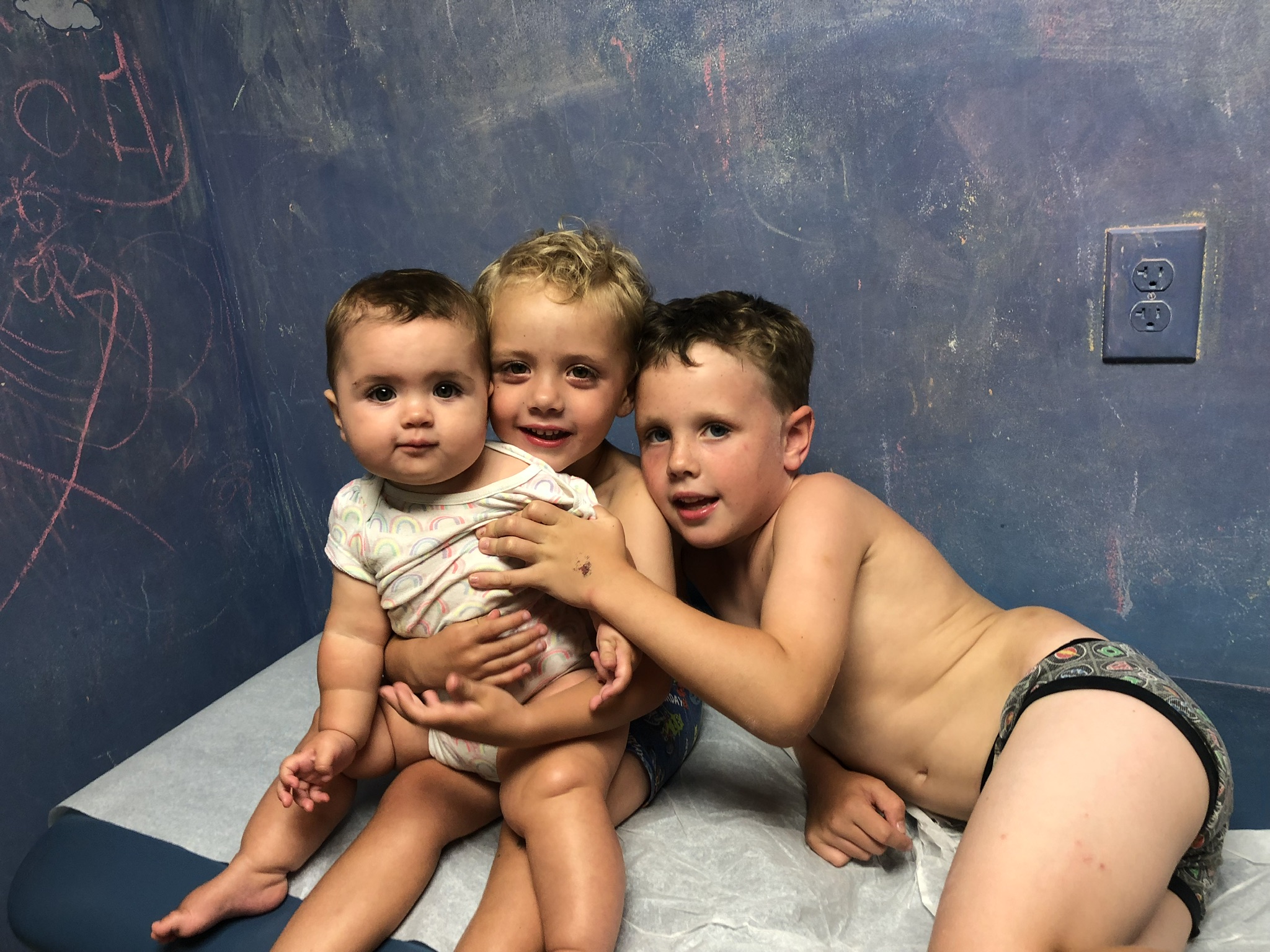Painting of three young brothers, one baby, one toddler, and one older boy.