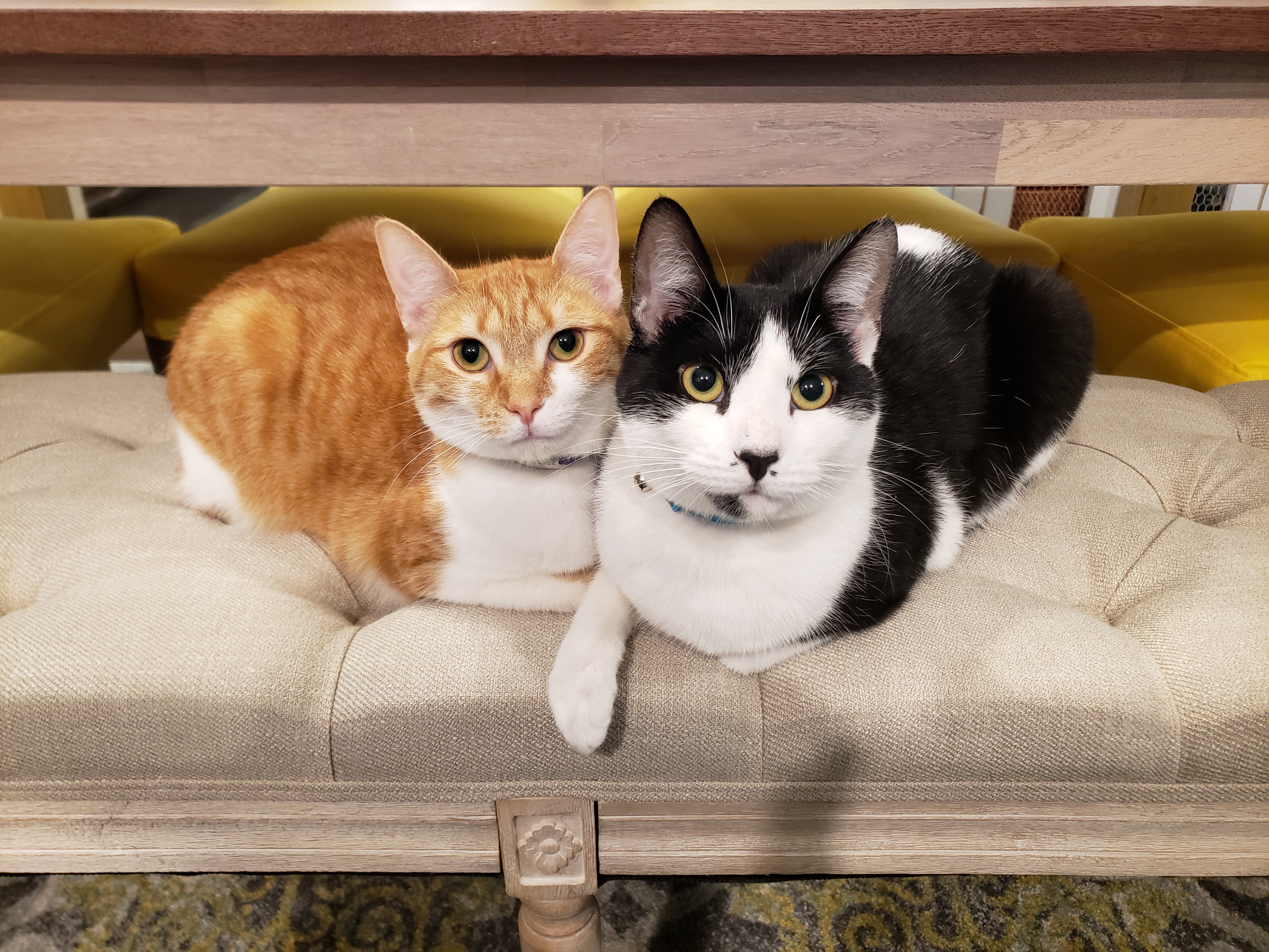 Painting of two dogs, Sasha and Hoss, sleeping together on a bed.