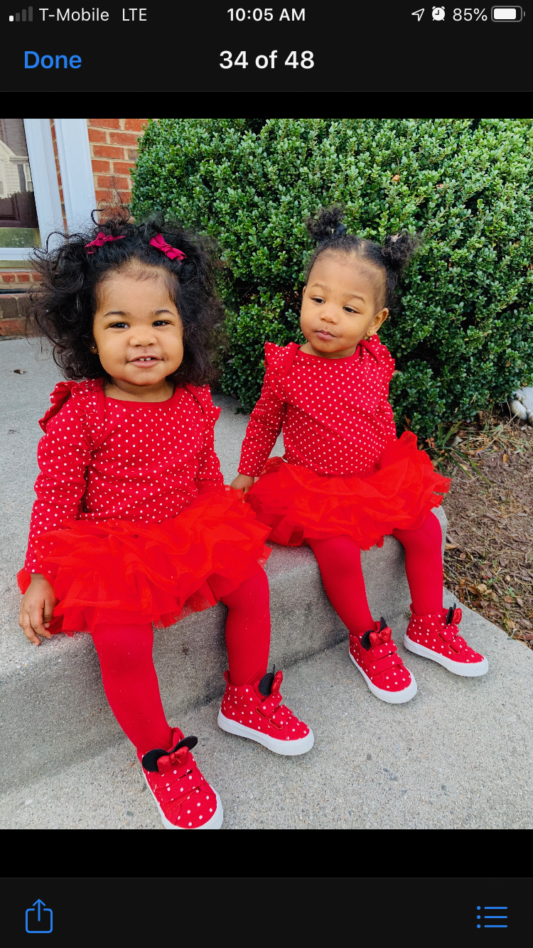 Portrait of three young Black girls in red dresses.