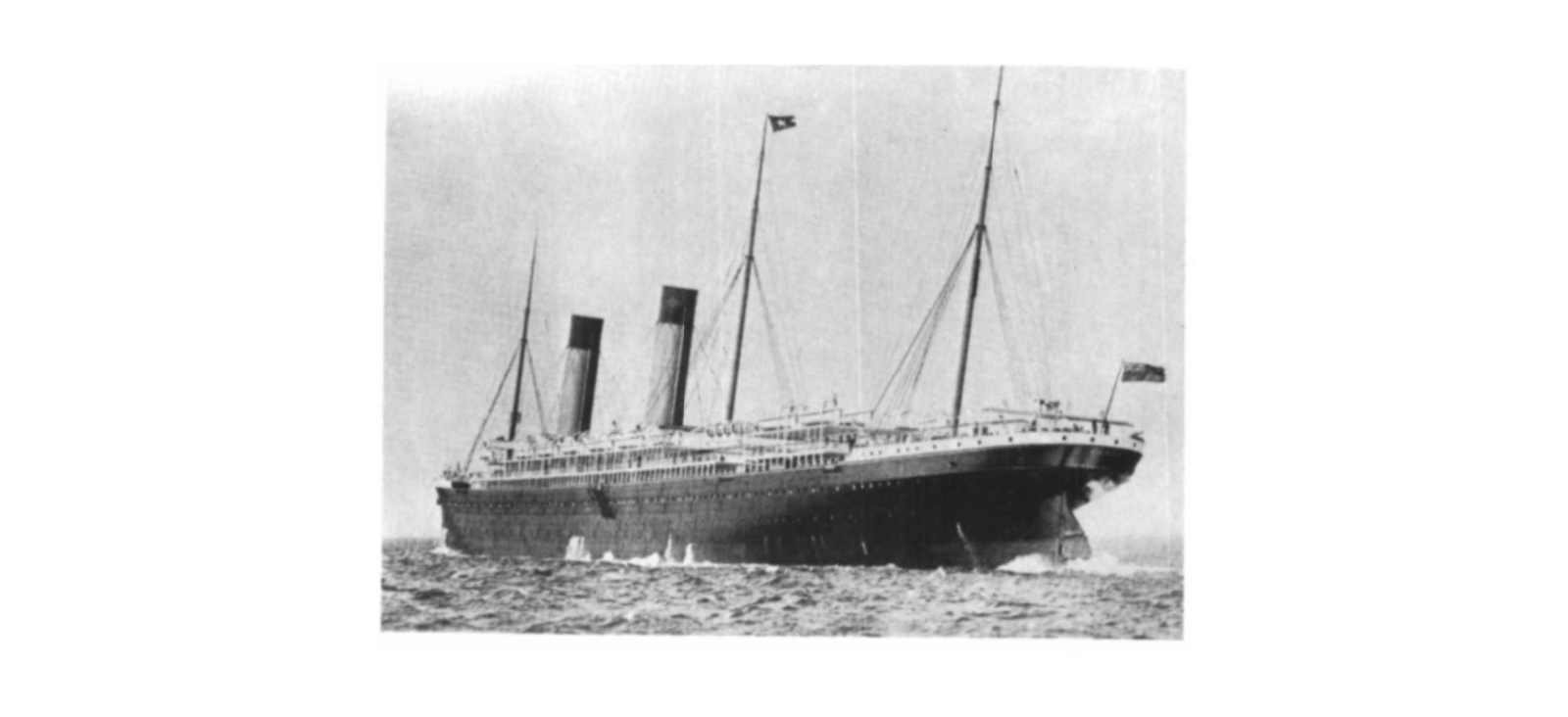 Black and white painting of a large ocean liner.