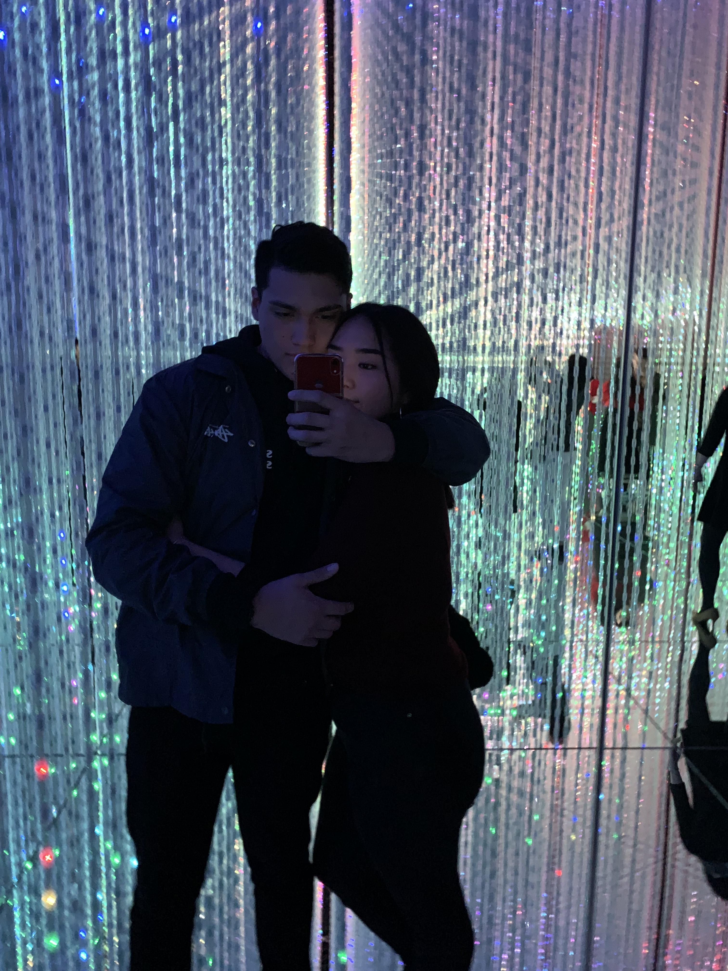 Painting of a young couple taking a selfie.