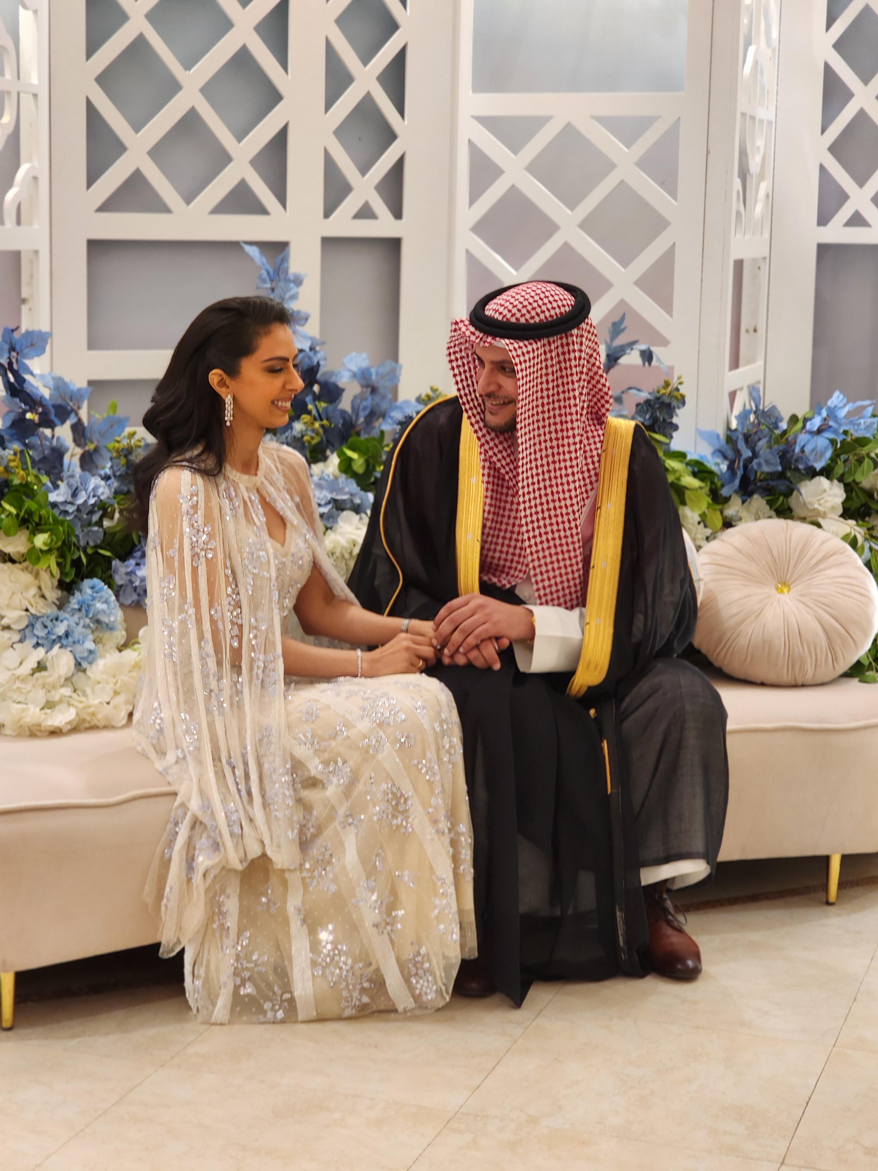 Painting of a bride and groom holding hands