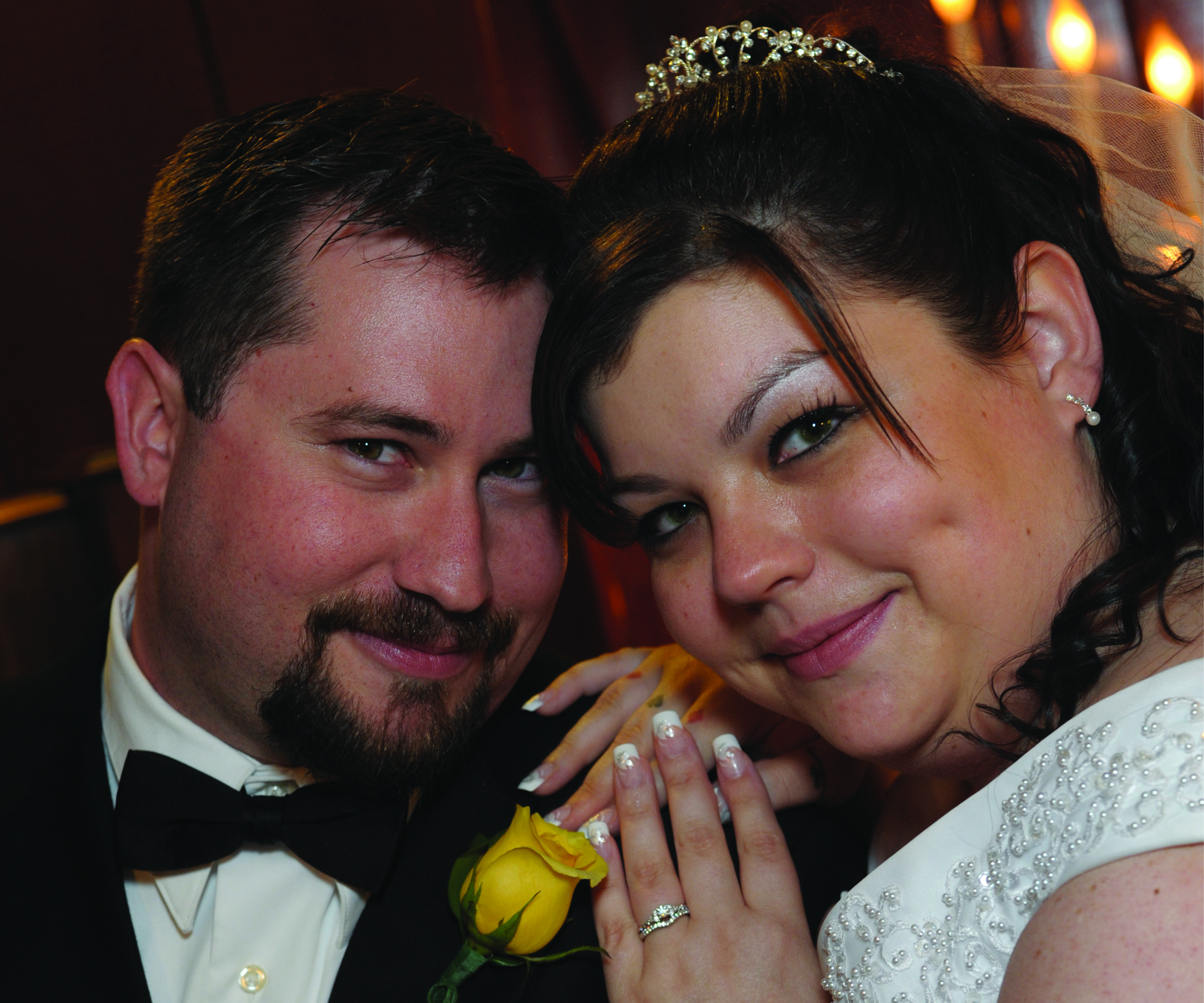 Painting of a bride and groom, the groom kisses the bride`s hand.