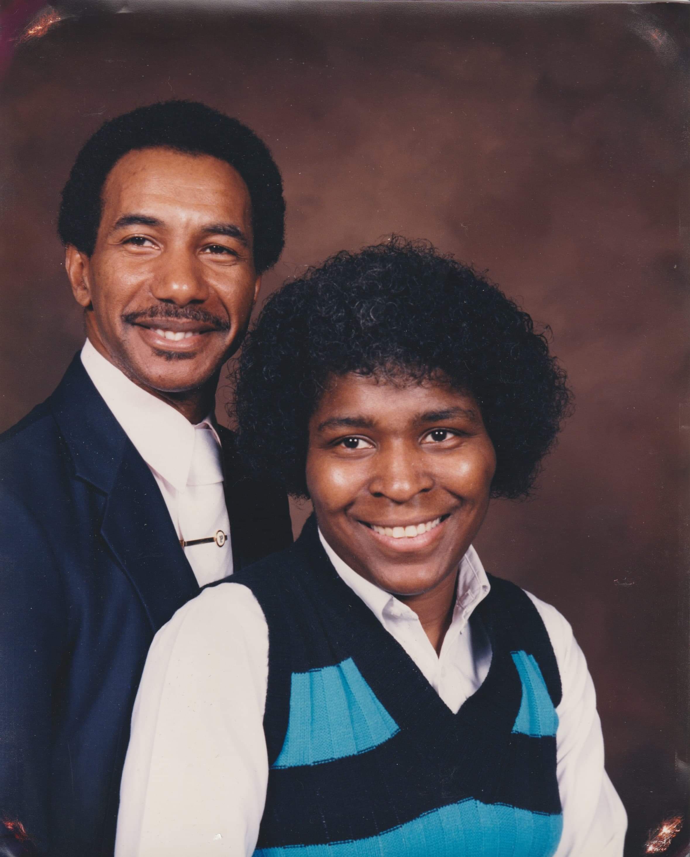 Painted portrait of a smiling Black couple.