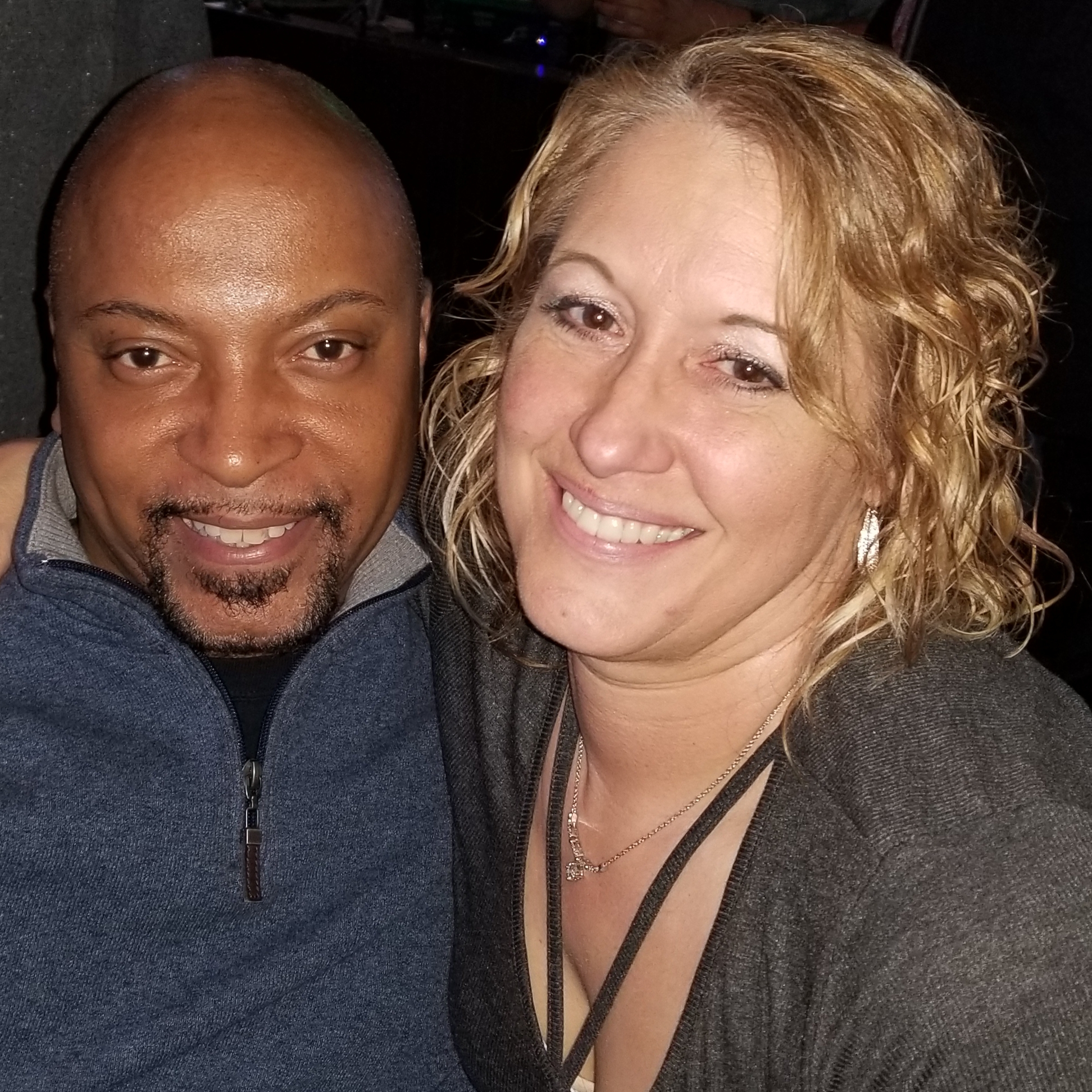 Oil painting portrait of a smiling interracial couple.