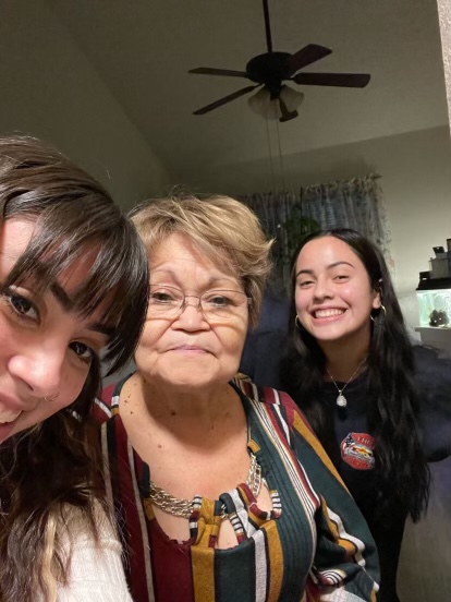 Painted portrait of a young girl wearing a tiara with her grandparents, text reads Forever with you