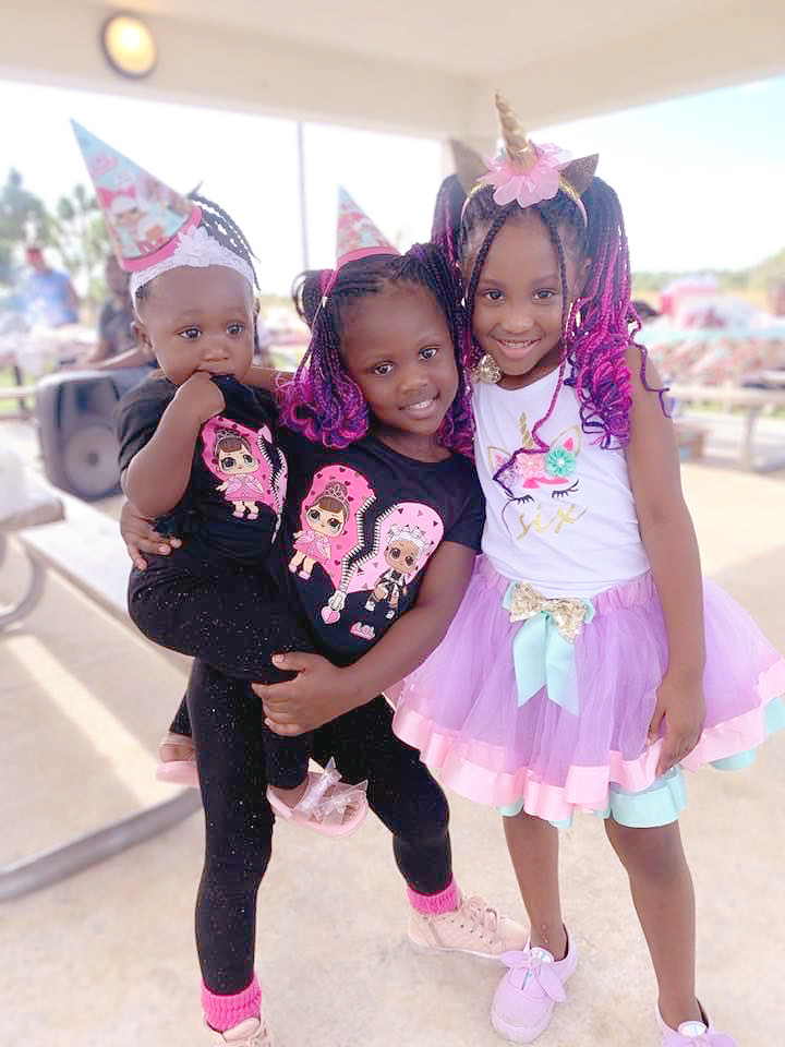 Colored pencil portrait of a multigenerational Black family: grandparents, three older girls, and two toddlers.