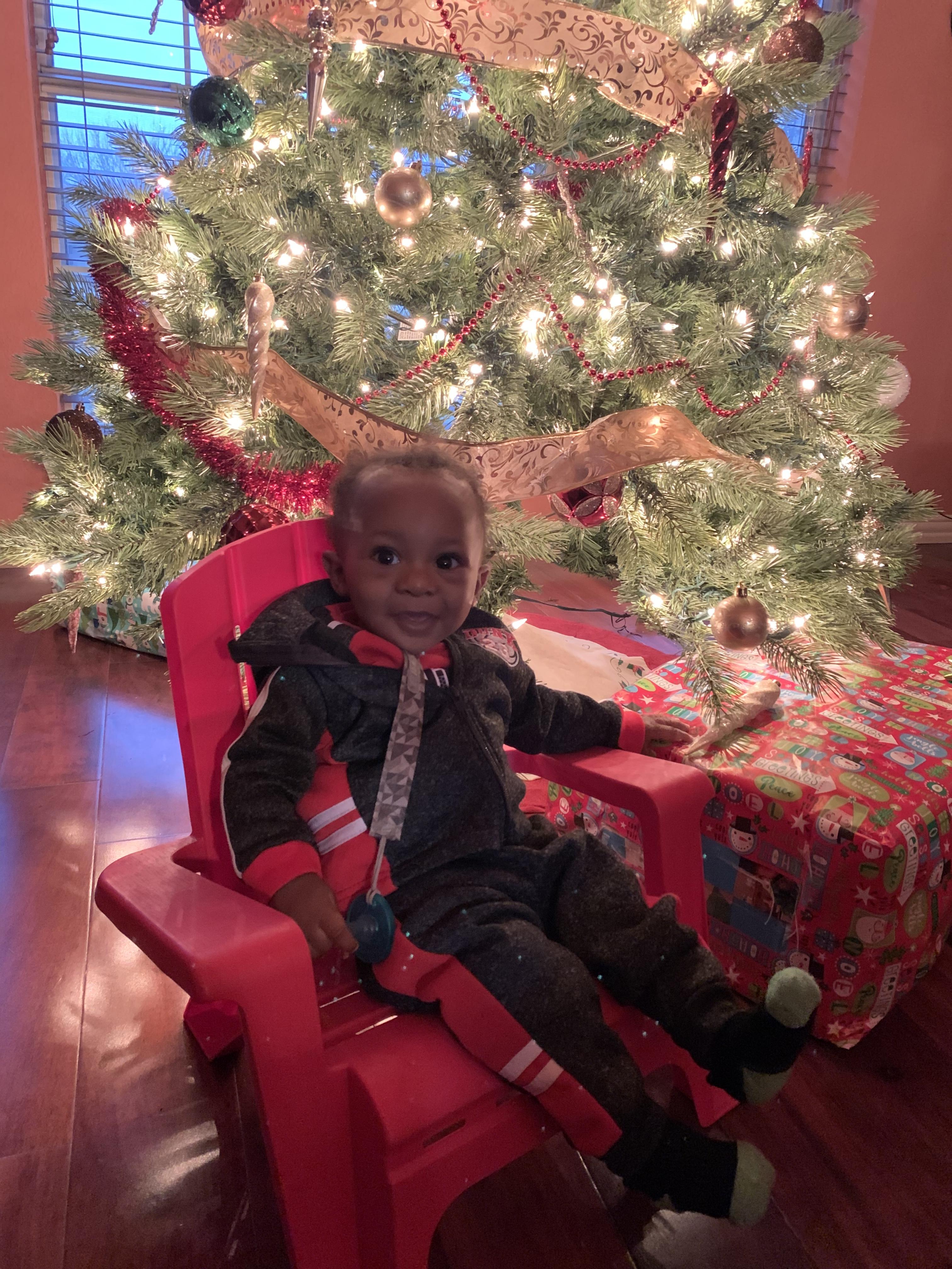 Painting of an elderly Black man in a suit and hat holding a toddler.