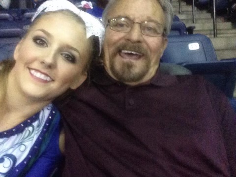Oil painting portrait of a smiling man and woman, the woman is wearing a cheerleader uniform.