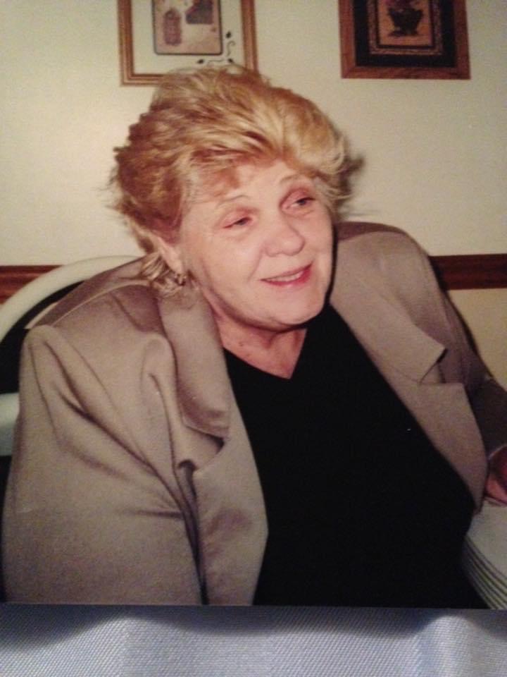 Oil painting of a smiling older woman holding a baby, the baby`s shirt says I really really REALLY love you.
