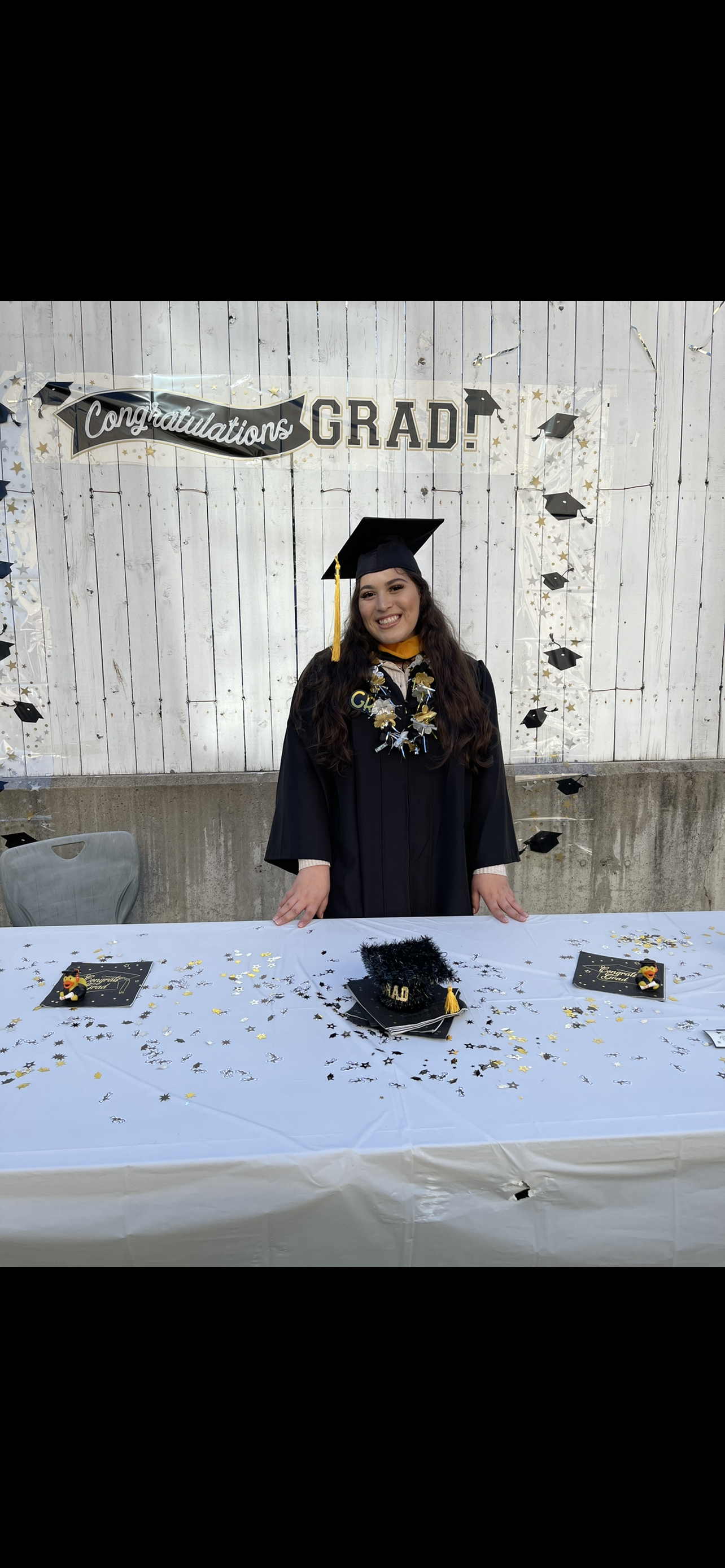 Painted portrait of two female graduates with their grandparents.