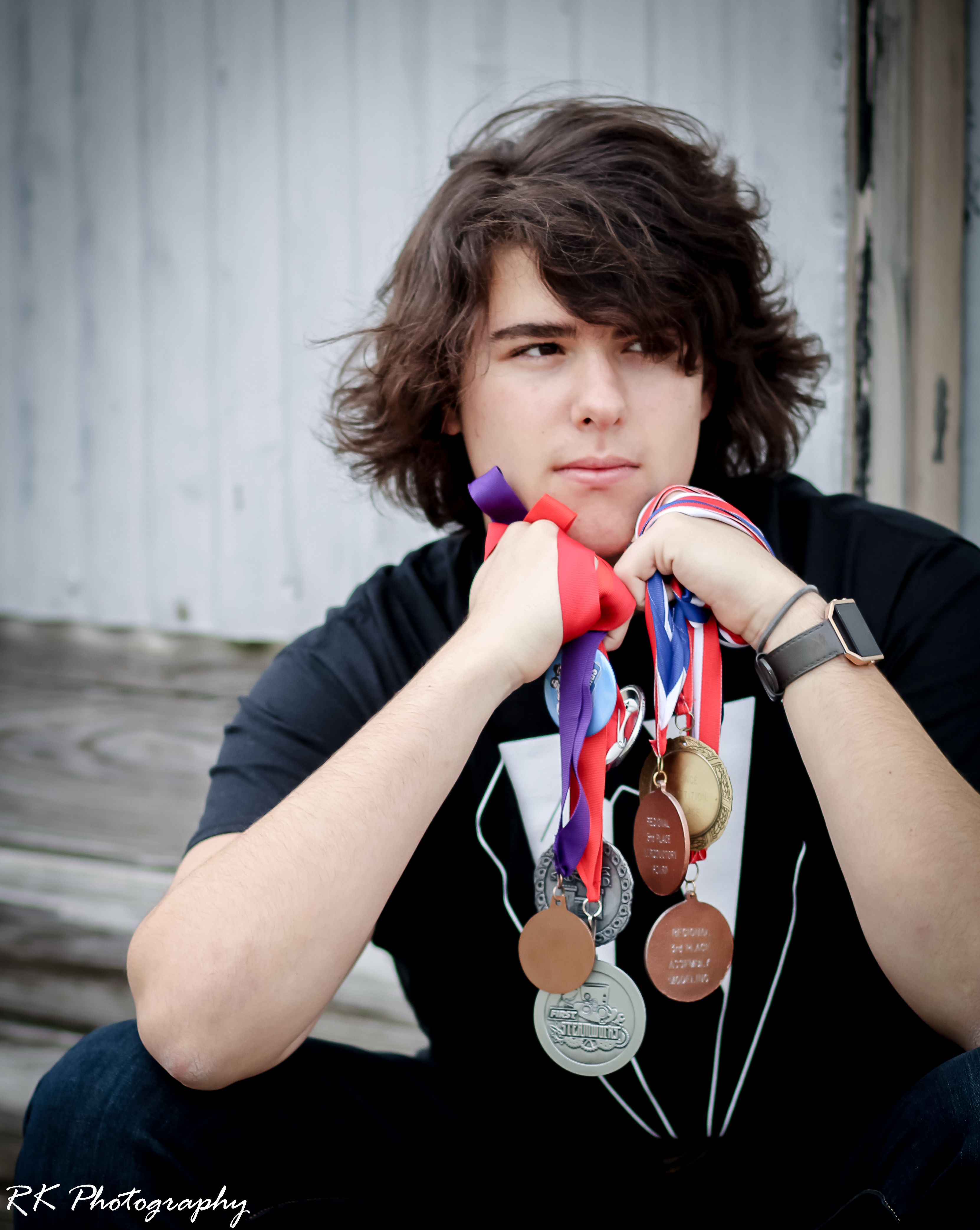 Portrait painting of a young person with several medals around their neck.