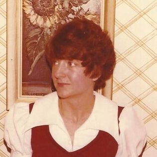 Colored pencil portrait of a woman with short, reddish-brown hair and a yellow collar.