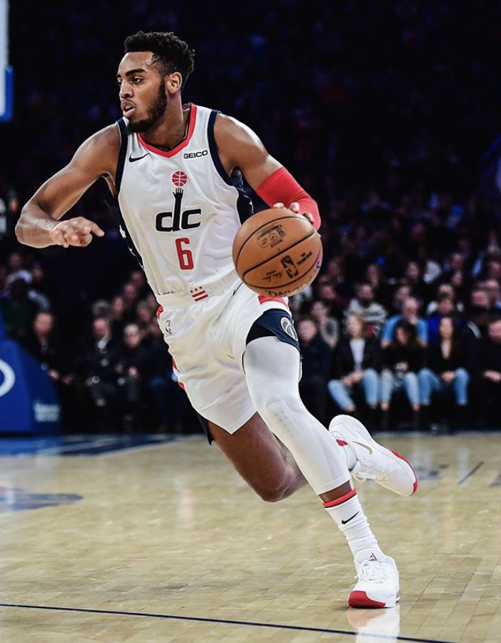 Painting of a basketball player dribbling the ball during a game
