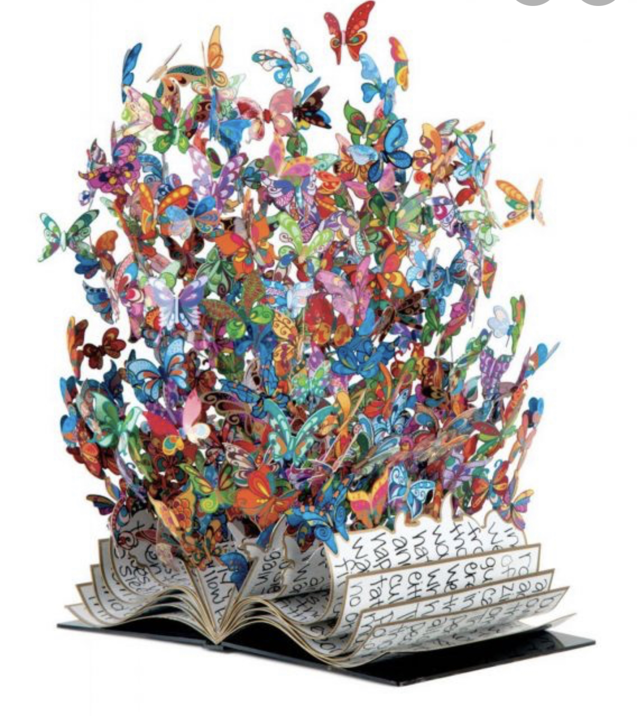 Watercolor painting of colorful butterflies emerging from an open book.