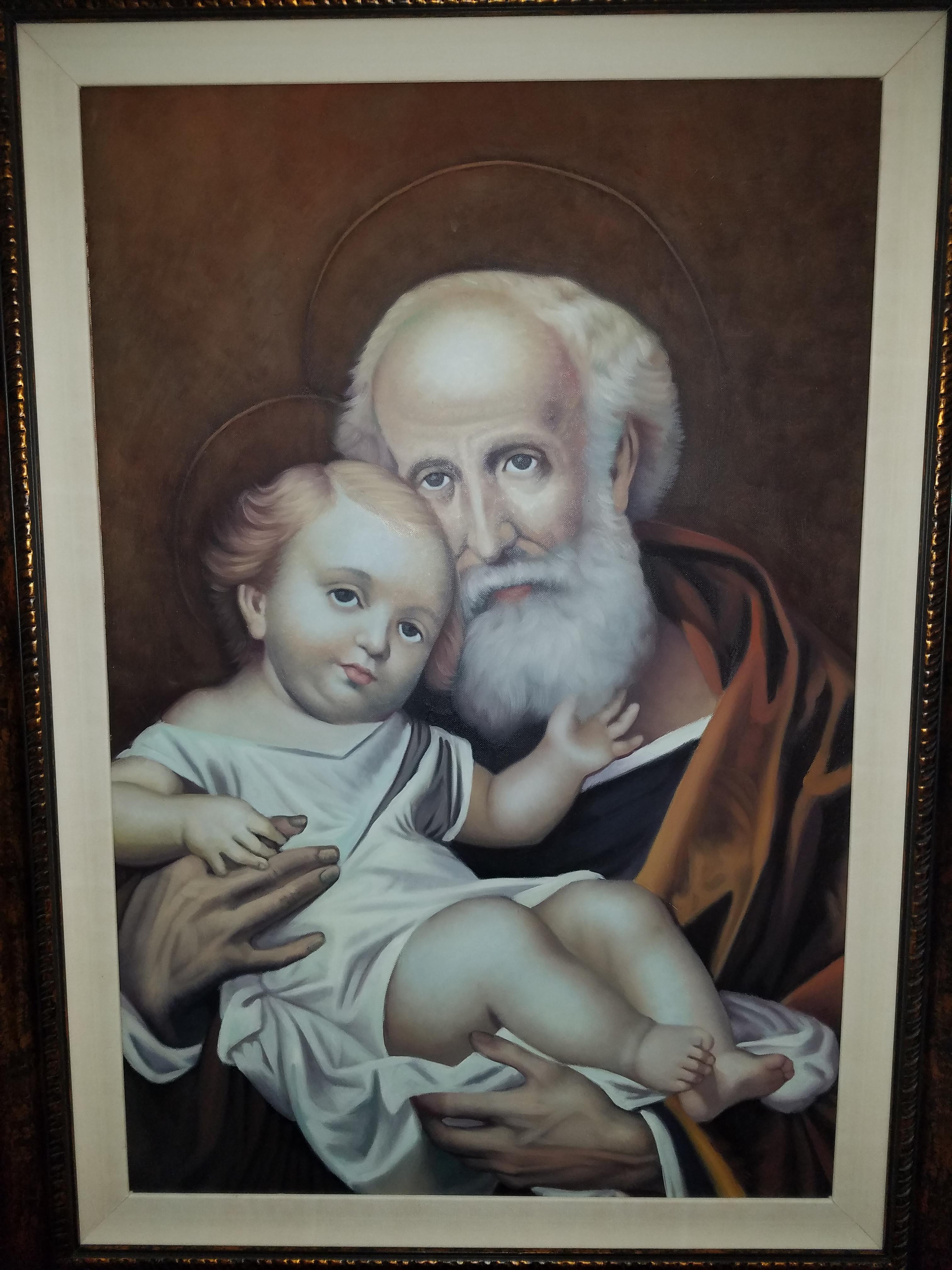 Painting of an elderly man holding a baby.