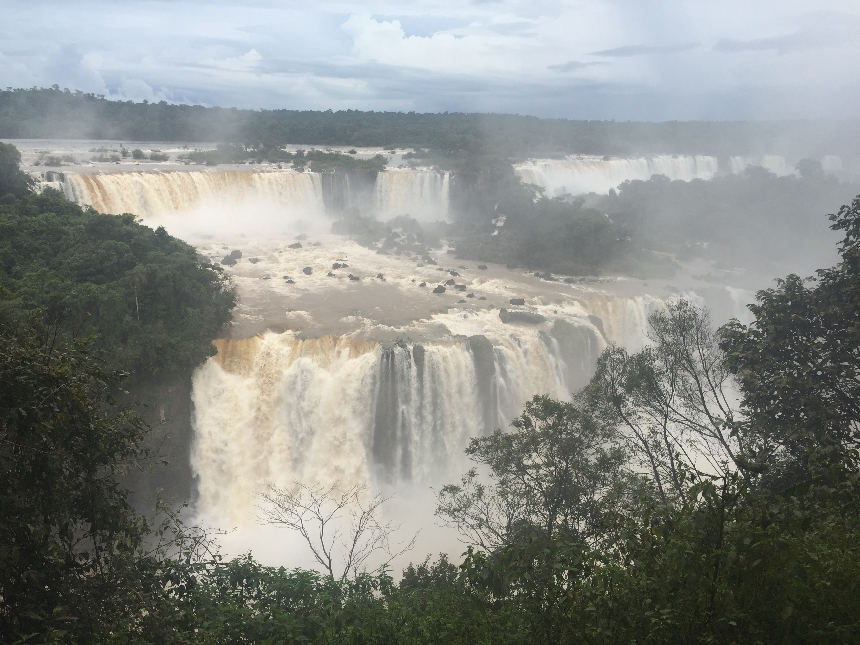 Painting of Iguazu Falls, surrounded by lush green vegetation.