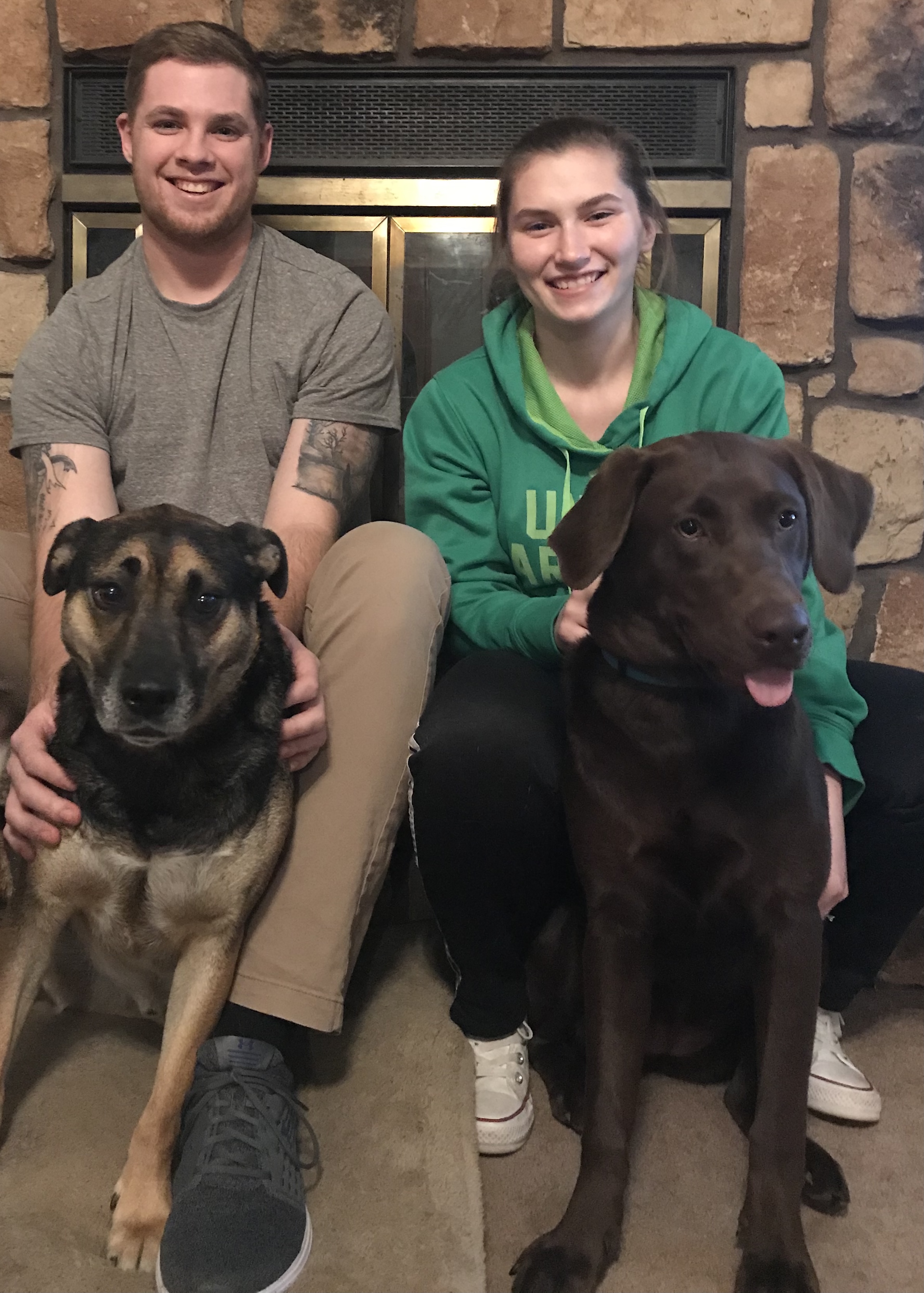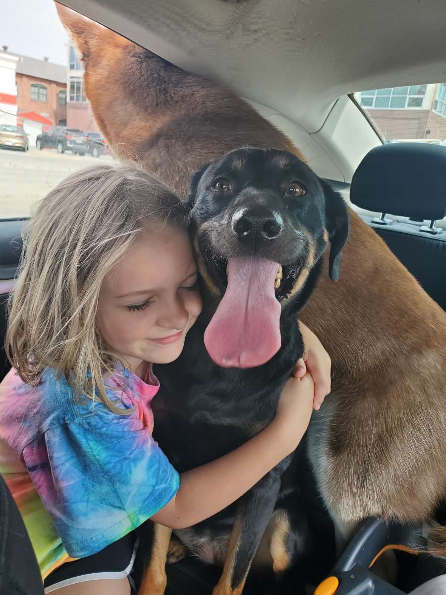 "This was a picture of my wife and our dog Kyrie who passed away about a year ago. Kyrie was such an amazing dog and was Erin`s best friend. We even snuck her into the hospital when Erin was pregnant with our first son. We miss her so much!"